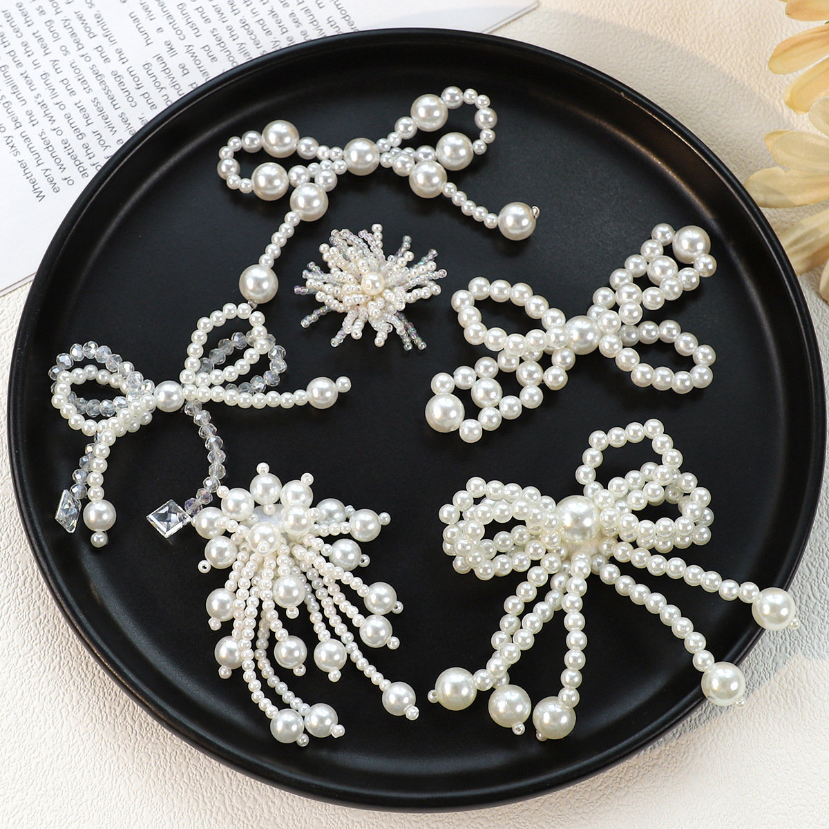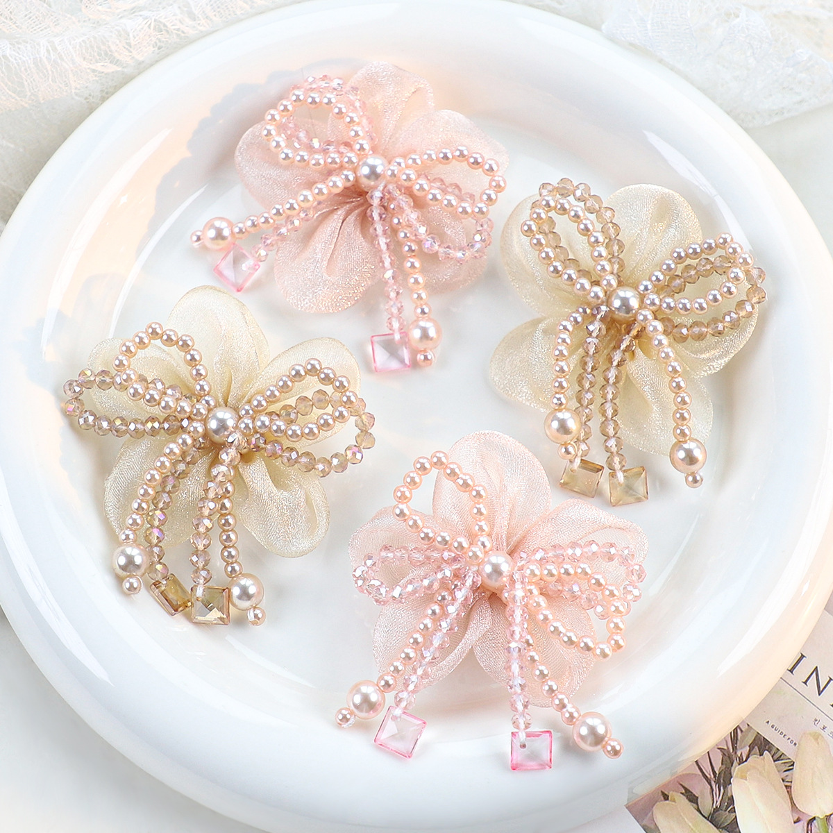 时尚串珠蝴蝶结diy鞋花配件手工编织仿珍珠发夹花朵服装包包辅料
