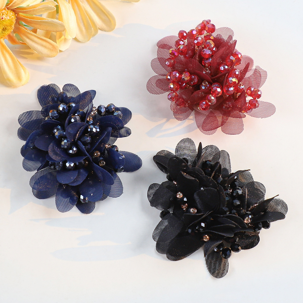 花DIYアクセサリー立体ヘアアクセサリー装飾品カラフルなシルクフラワー衣料品材料卸売オーガンジー花