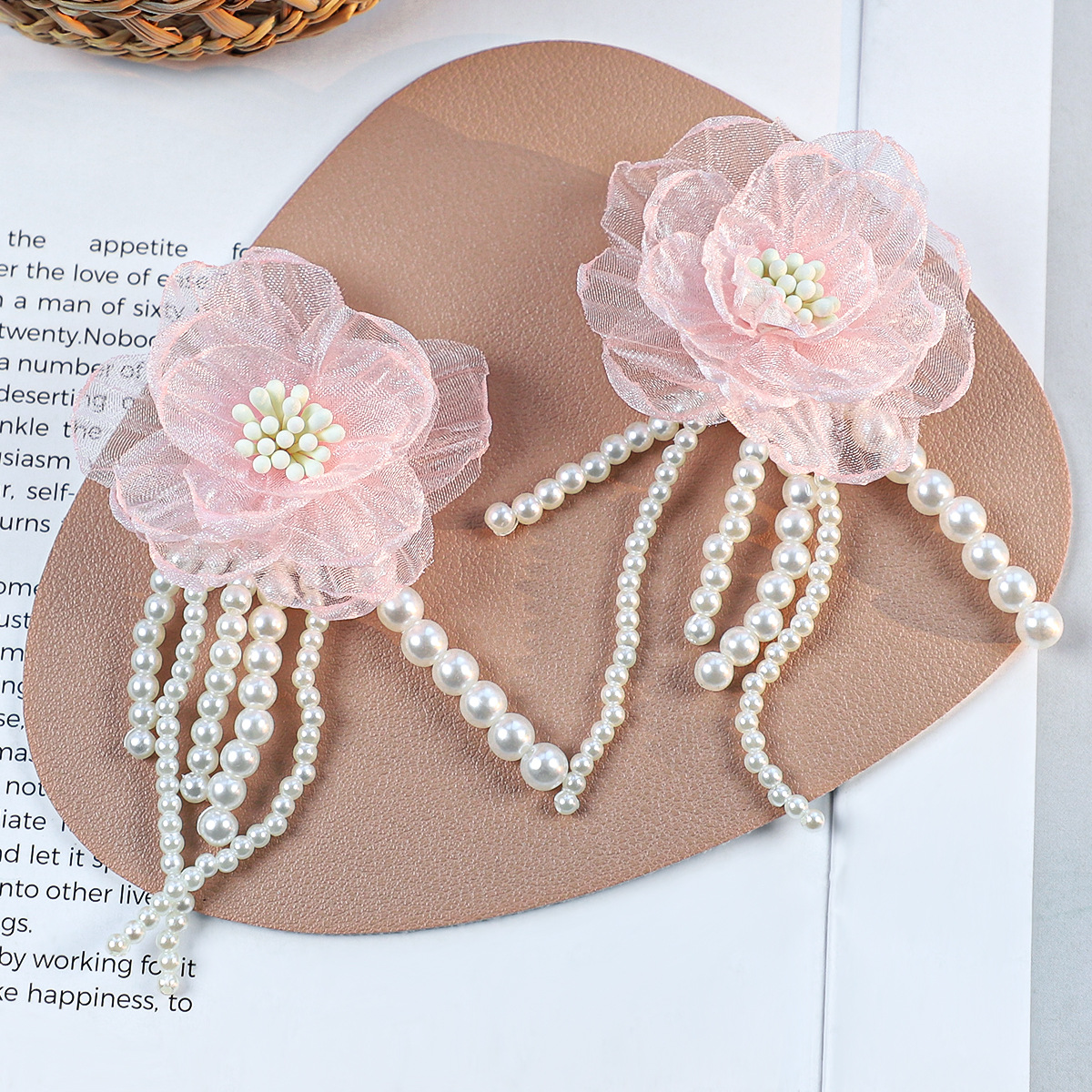 焼けた縁の花柄二色飾り、レースDIYヘアピンアクセサリー、オーガンジー立体衣装イヤリング、立体花