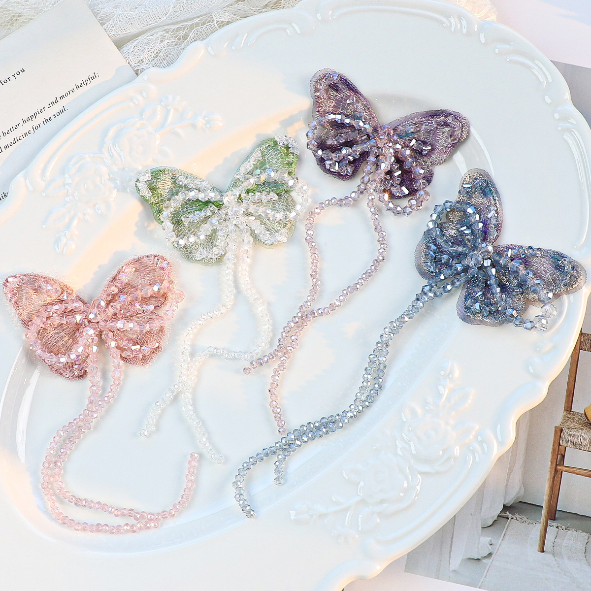 新款高级感头饰配件水晶串珠流苏刺绣蝴蝶diy半成品蝴蝶辅料古风