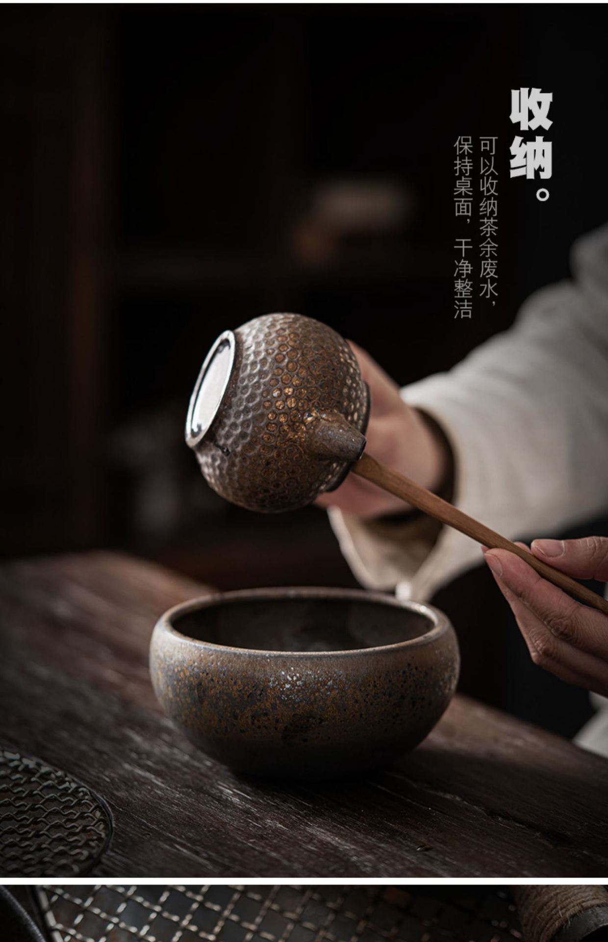 中式复古建水茶杯洗老岩泥鎏银废水缸茶渣缸功夫茶道配件水孟水洗