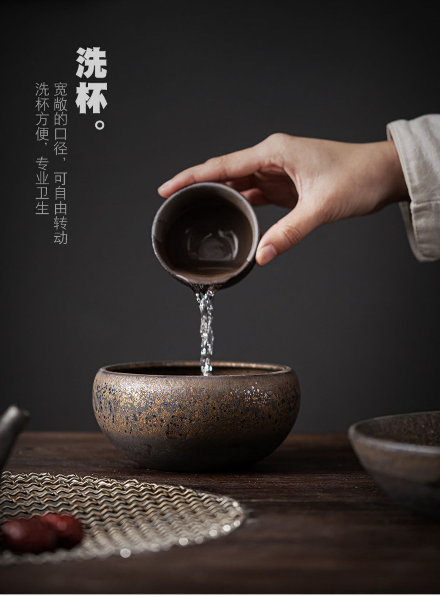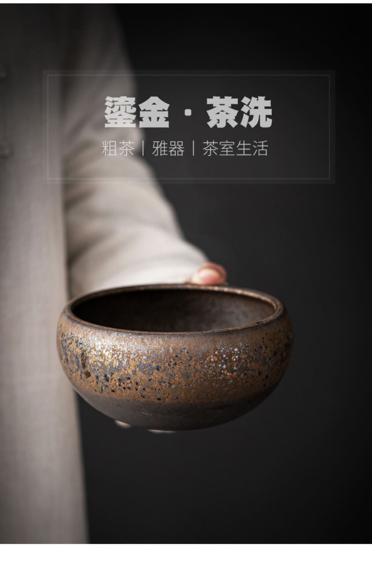 レトロな金彩粗陶茶洗、茶碗洗い用、茶葉入れ、中国風銀釉、功夫茶道具、茶道小物