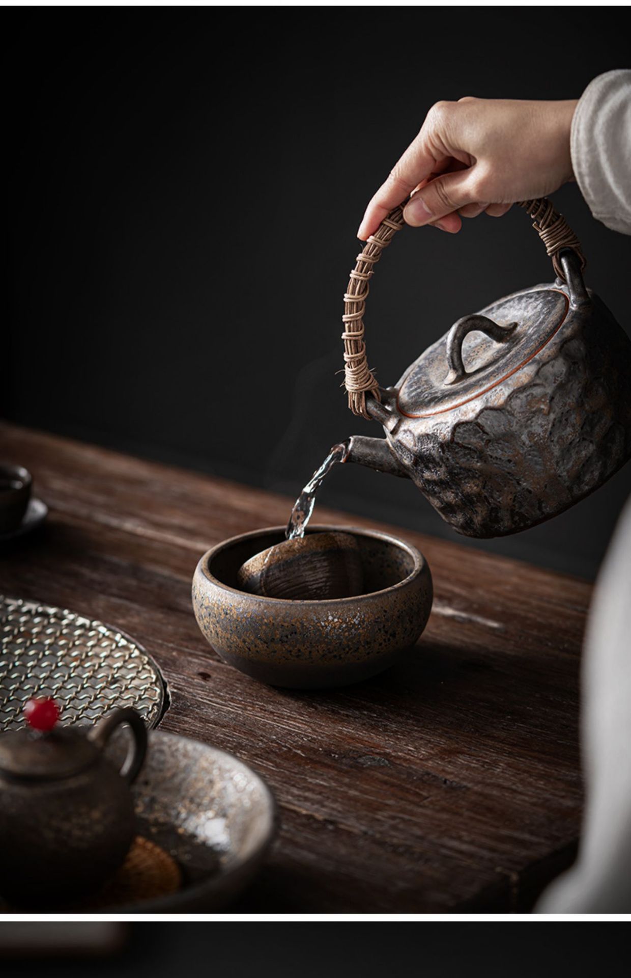 レトロな陶器の提梁壺、小型中国式茶壺、家庭用功夫茶器、レトロな陶器の壺、単体茶壺