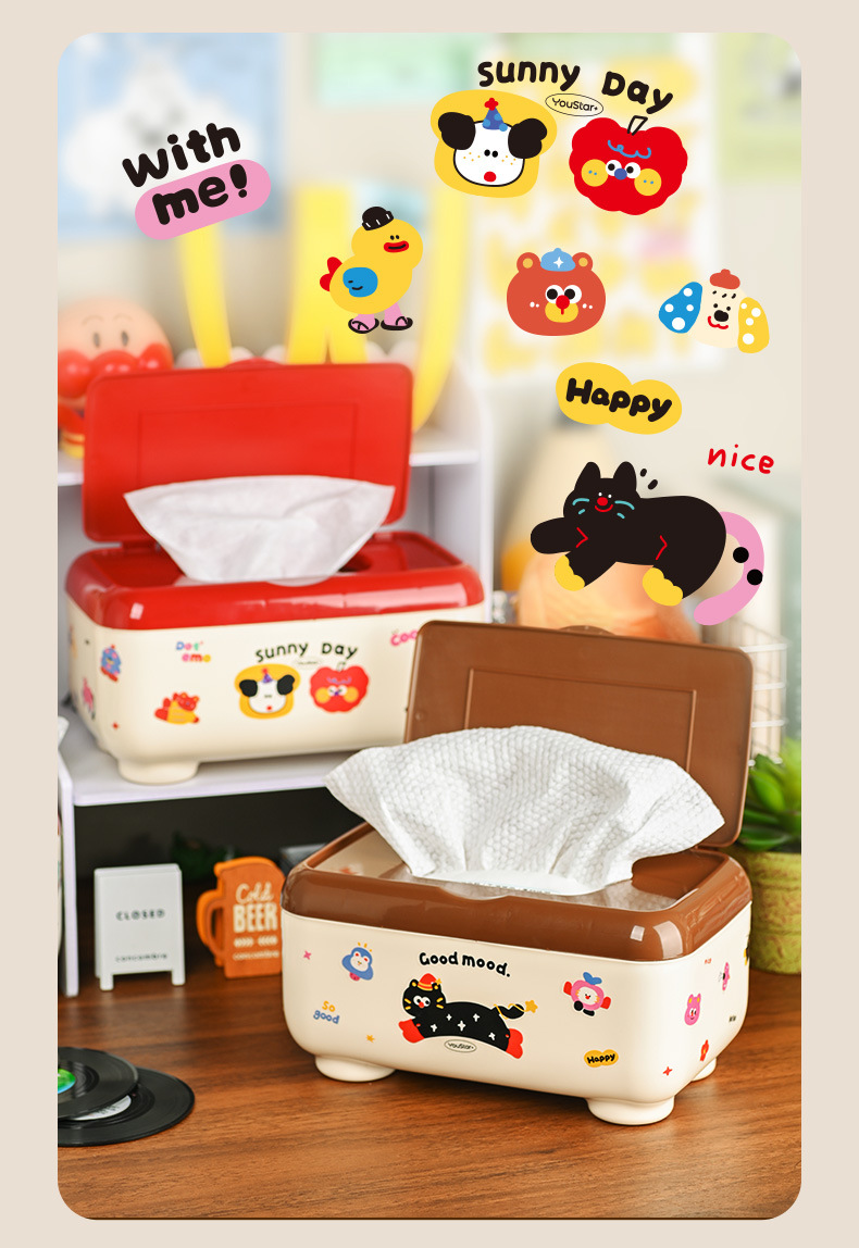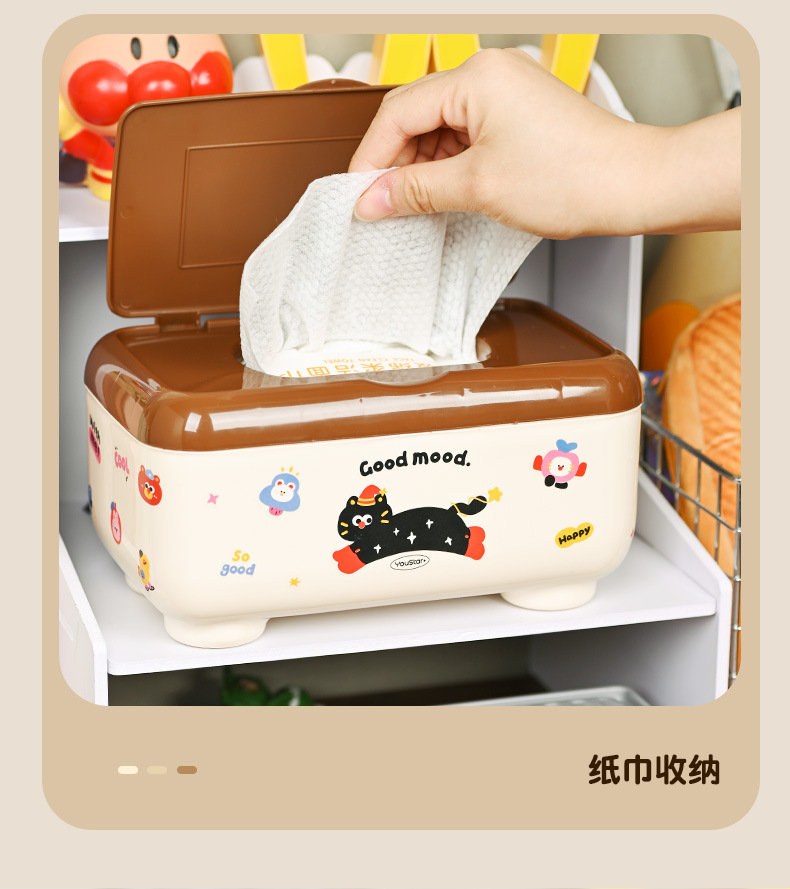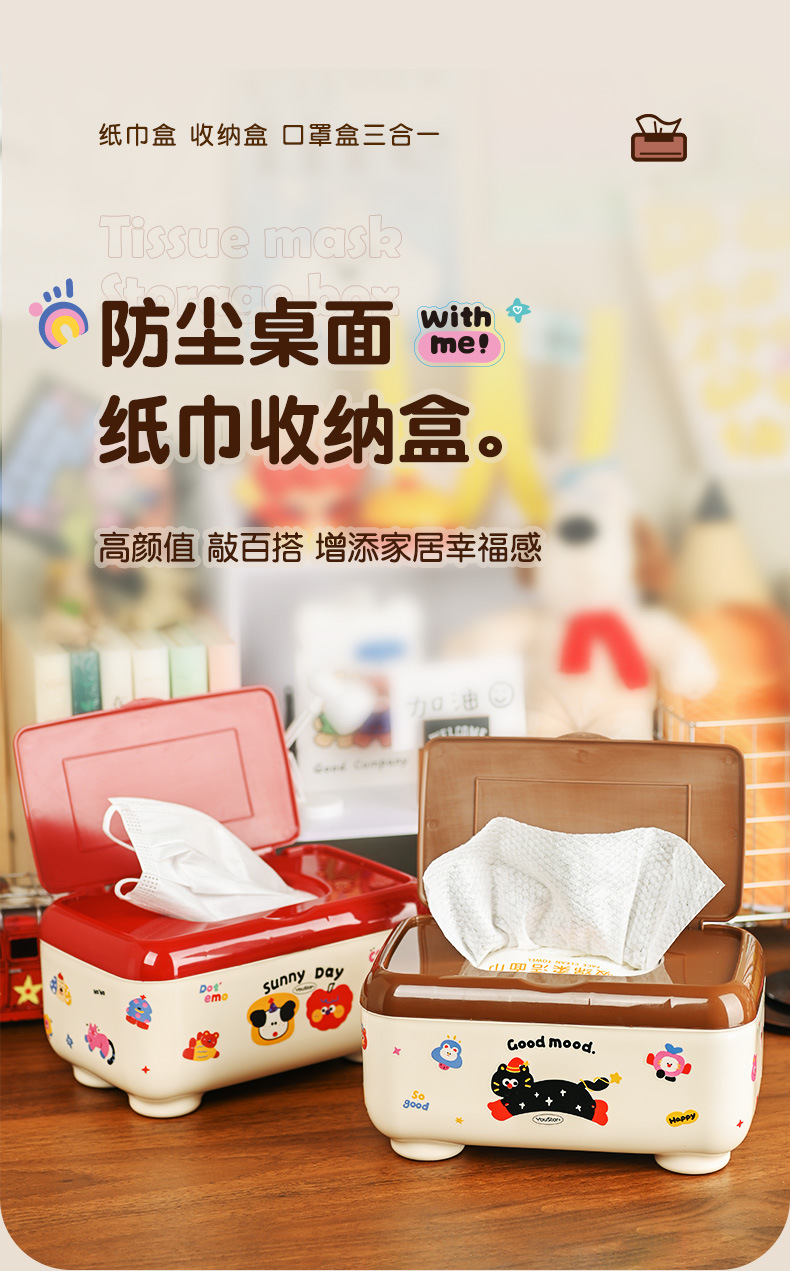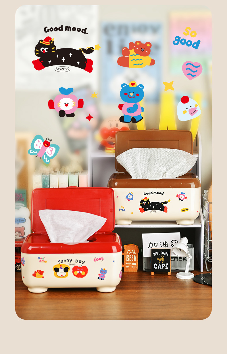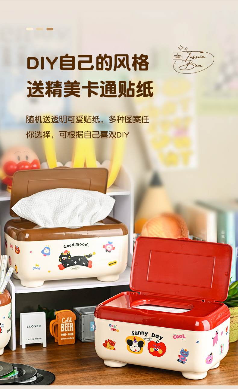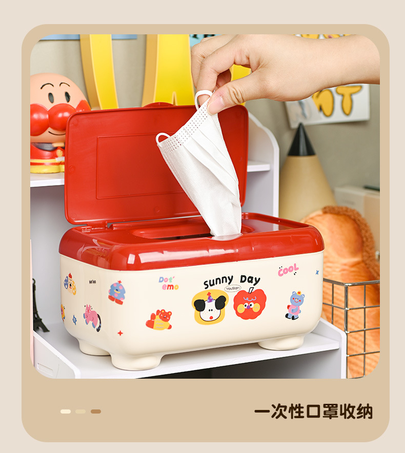クリエイティブな漫画の多機能防塵ティッシュボックス、ティッシュ収納ボックス、学生デスク、オフィスデスクティッシュボックス