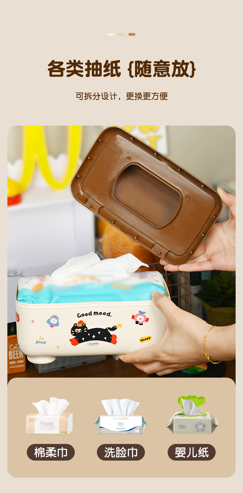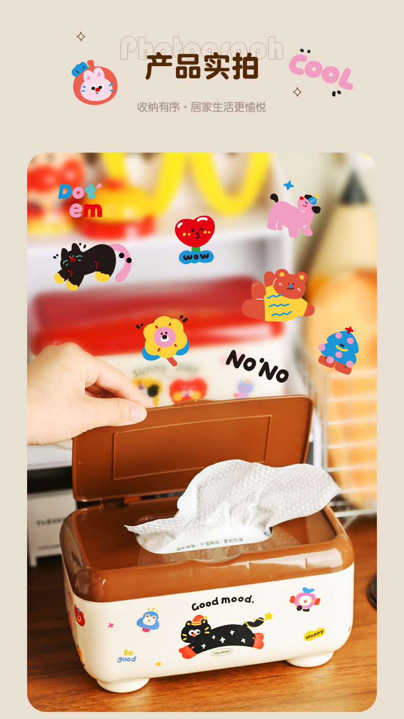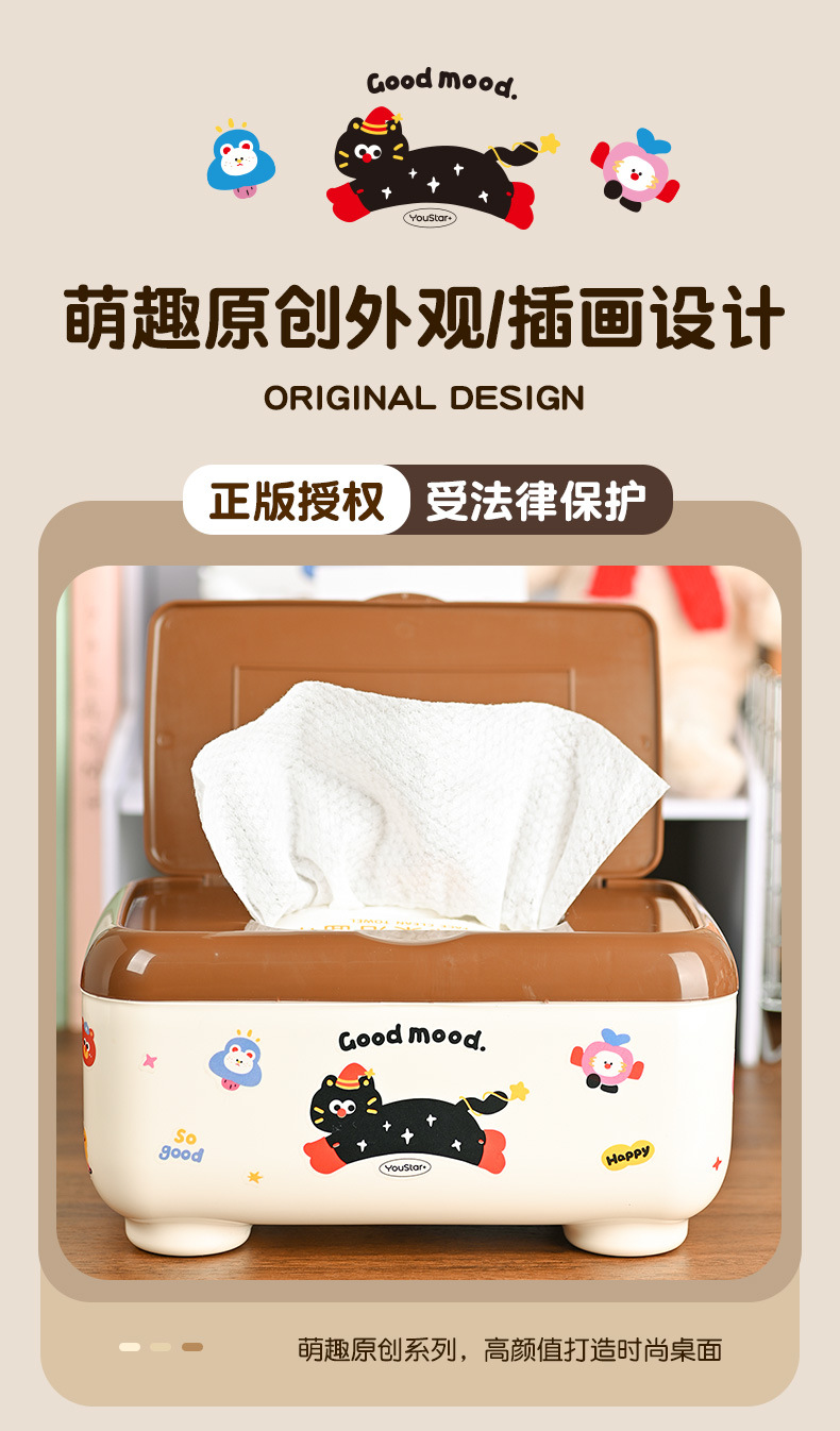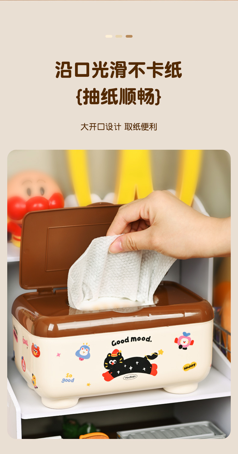 クリエイティブな漫画の多機能防塵ティッシュボックス、ティッシュ収納ボックス、学生デスク、オフィスデスクティッシュボックス