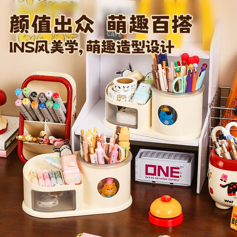 ドーパミンデスクトップ文房具収納ボックスかわいい漫画筆筒学生オフィス筆箱ins女性化粧品収納