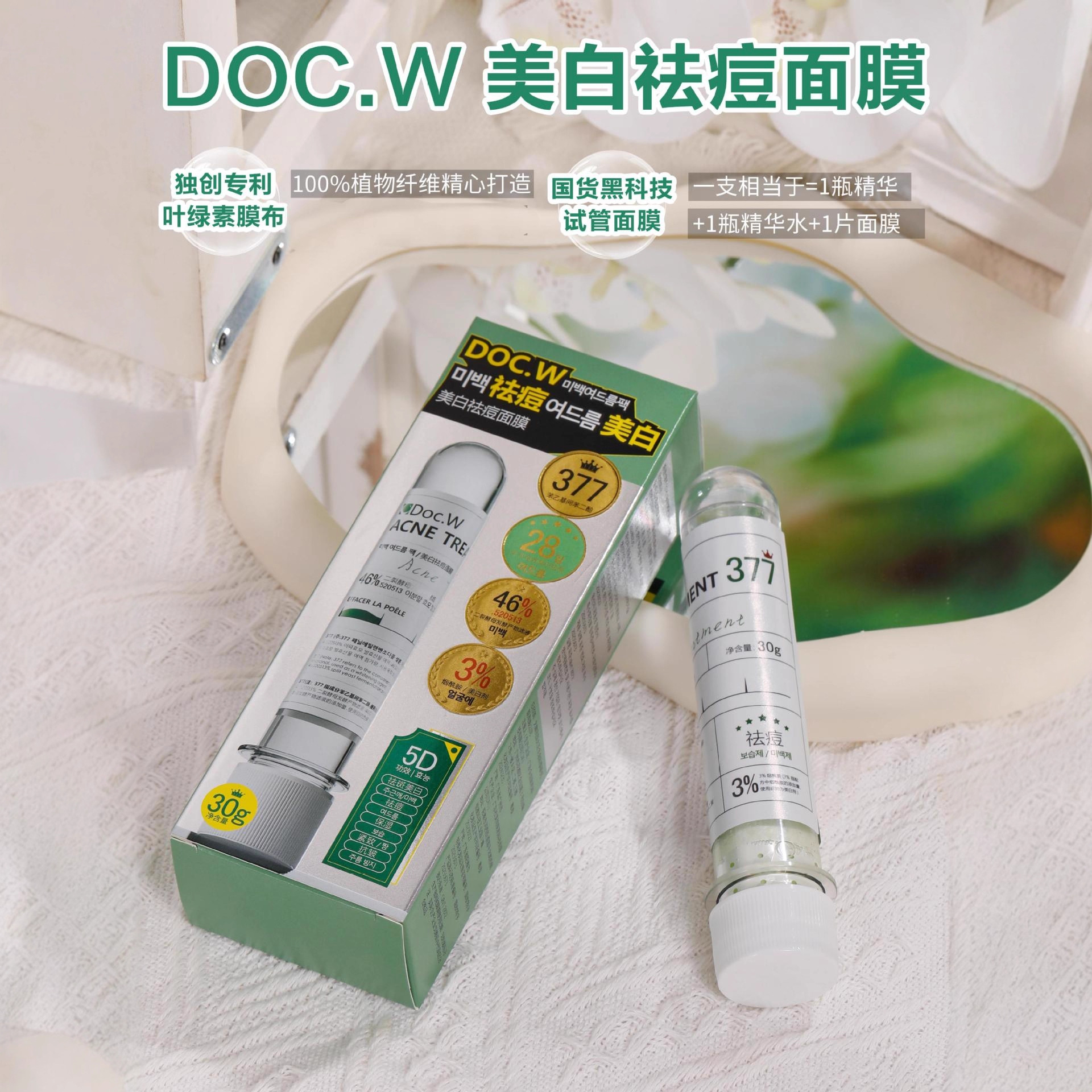 DOC.W美白祛痘面膜试管精华活性补水保湿精粹淡化痘印嫩白清爽嫩