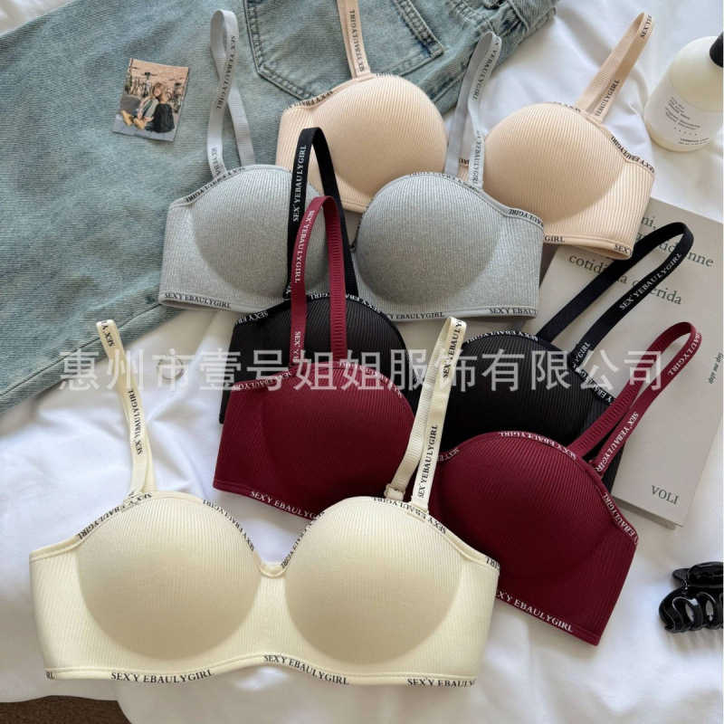 2cmの小さな地雷の小さな胸が大きく見えるプッシュアップレタリングブラジャー、ワイヤーなし、丸くてヌード感のある肌に優しいワンピースブラジャー