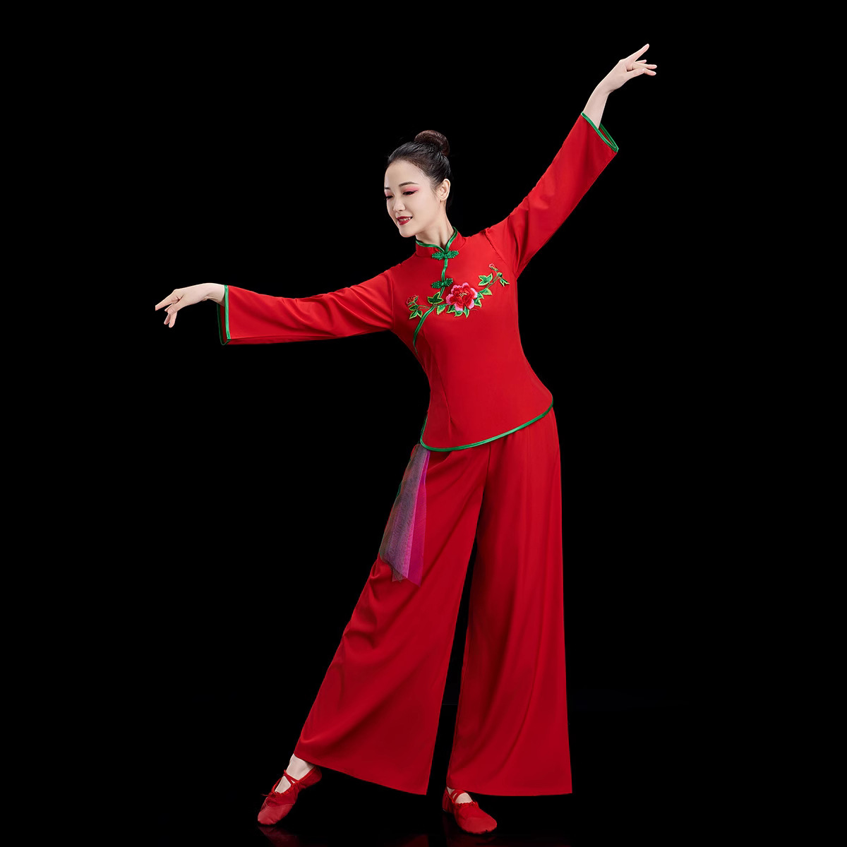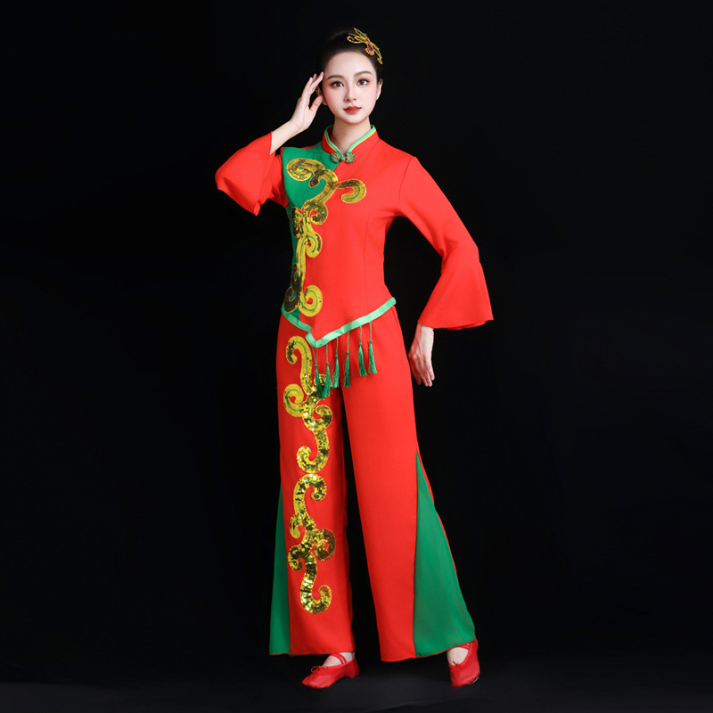 秧歌服女新款套装扇子舞蹈演出服腰鼓广场舞服装民族表演跳舞衣服