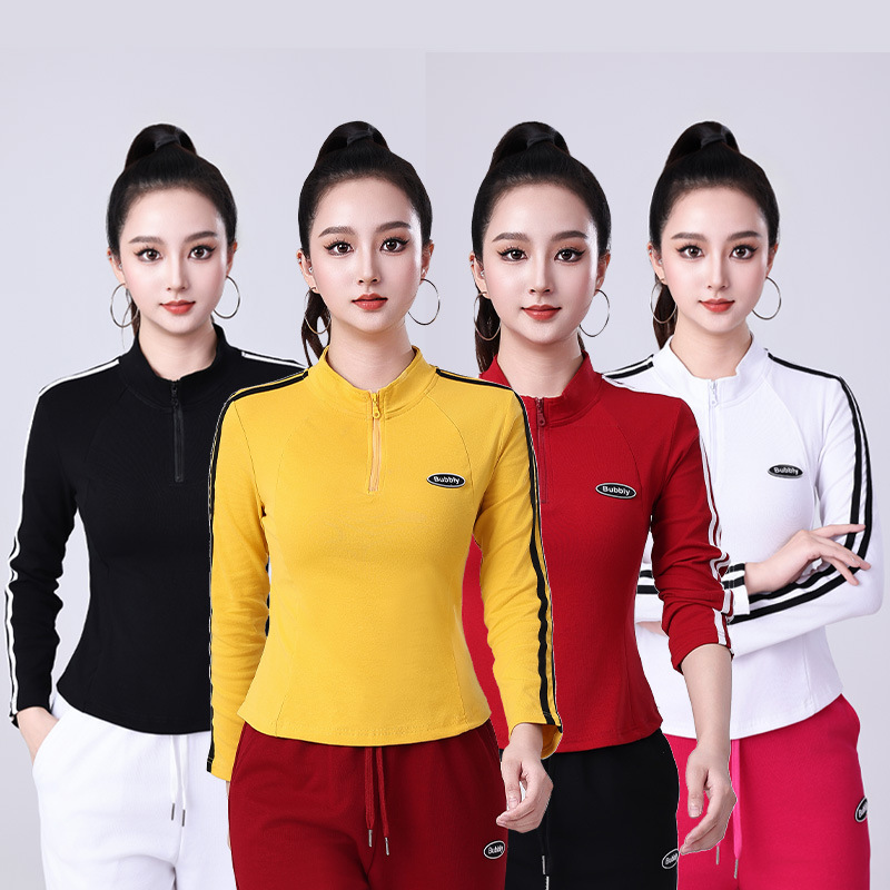新款广场舞上衣长袖半拉链立领运动户外跑步女士上衣棉现货