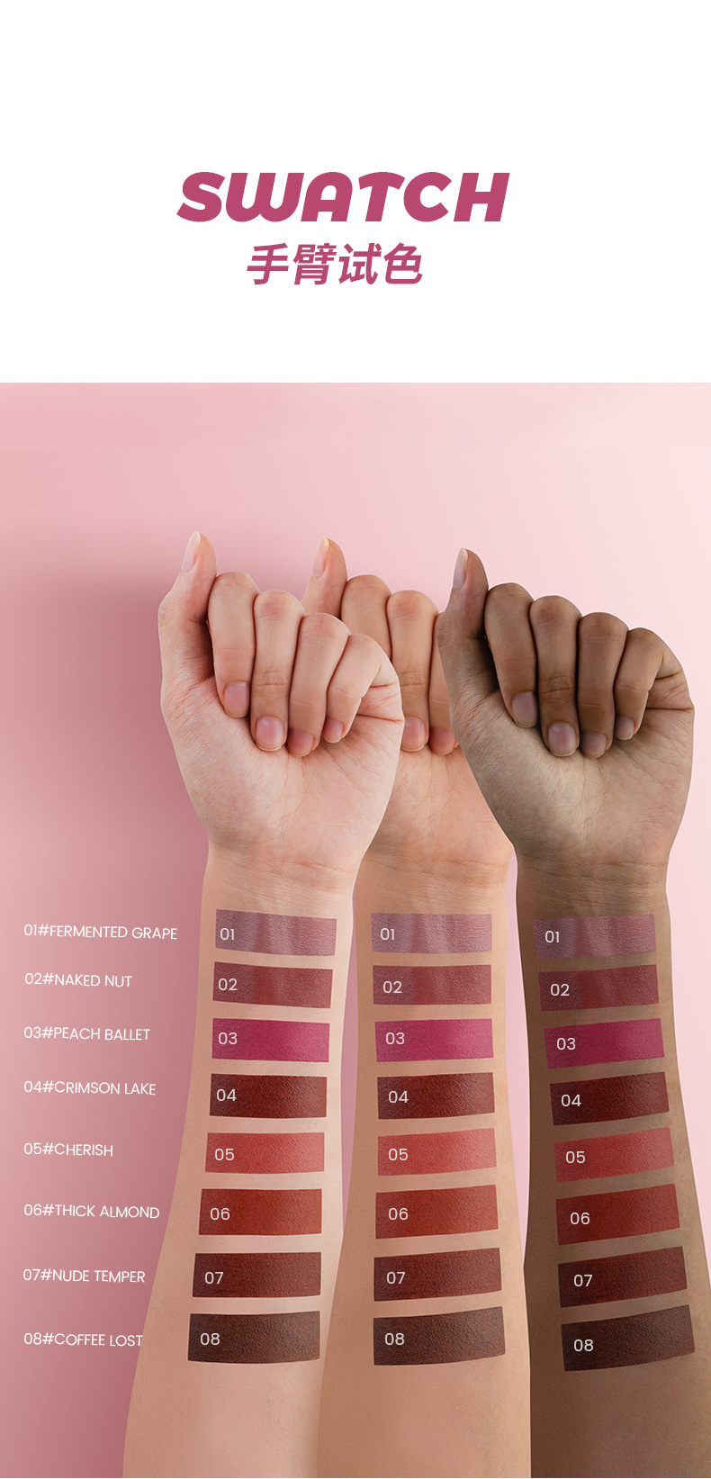 Pudaier21色のつや消しの保湿は唇の色を潤します。