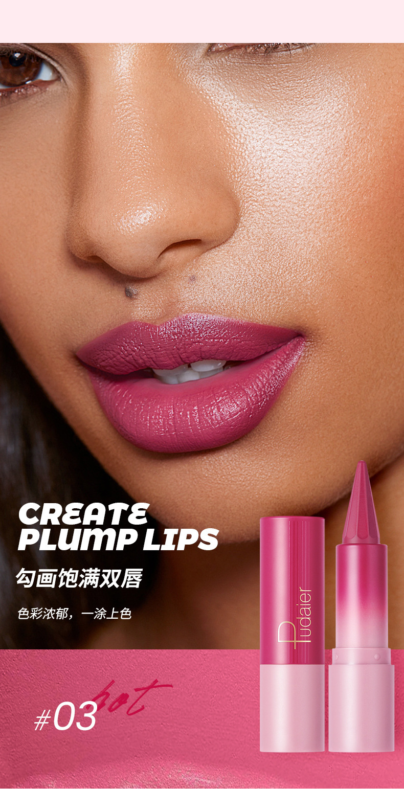 Pudaierつや消し霧面口紅唇線二合一6色持続先端唇線ペンクロスボーダー美化粧口紅ペン