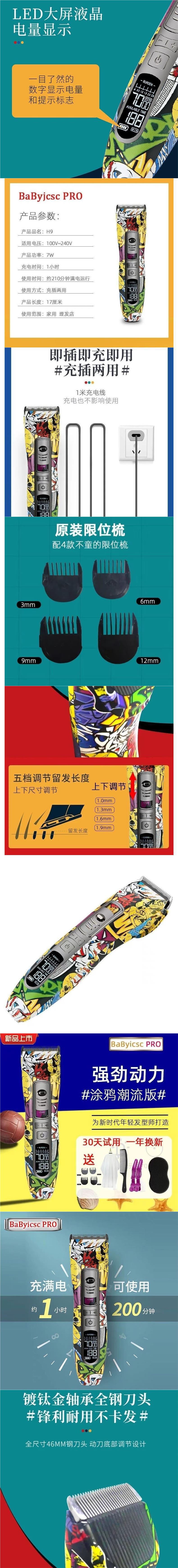 落書き電気推し切りバーデニスH9推子剃髪散髪器専門電気推子ヘアサロン美容店専用