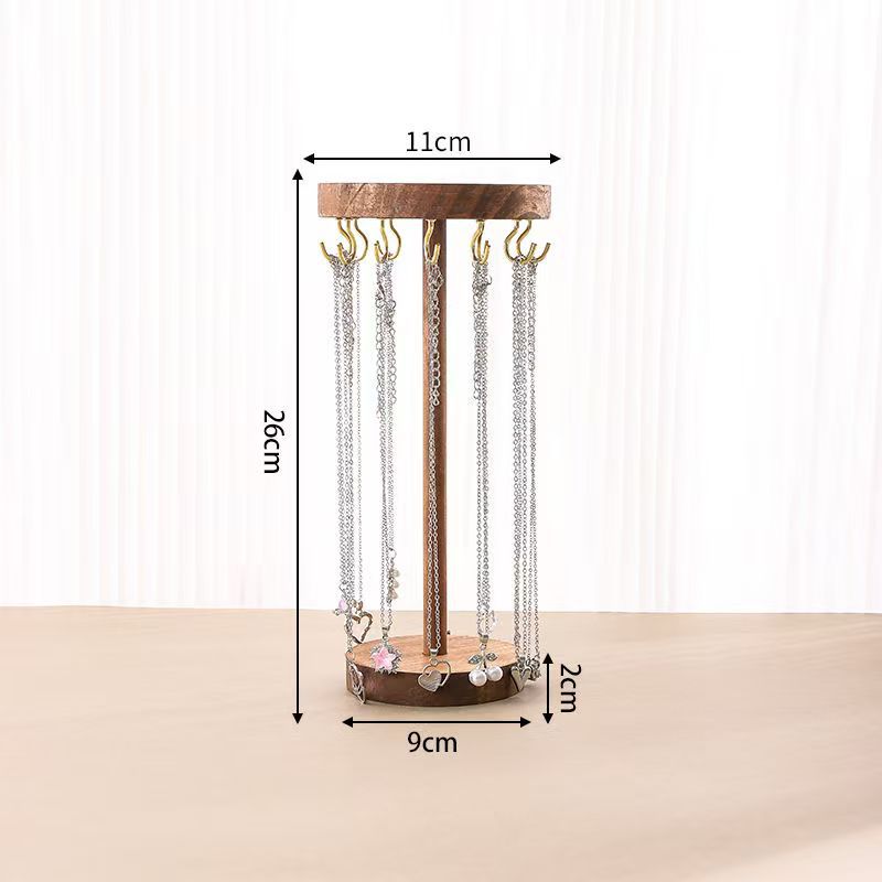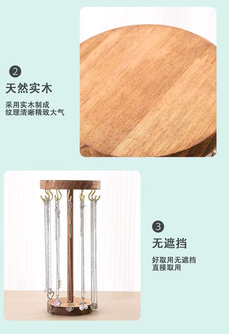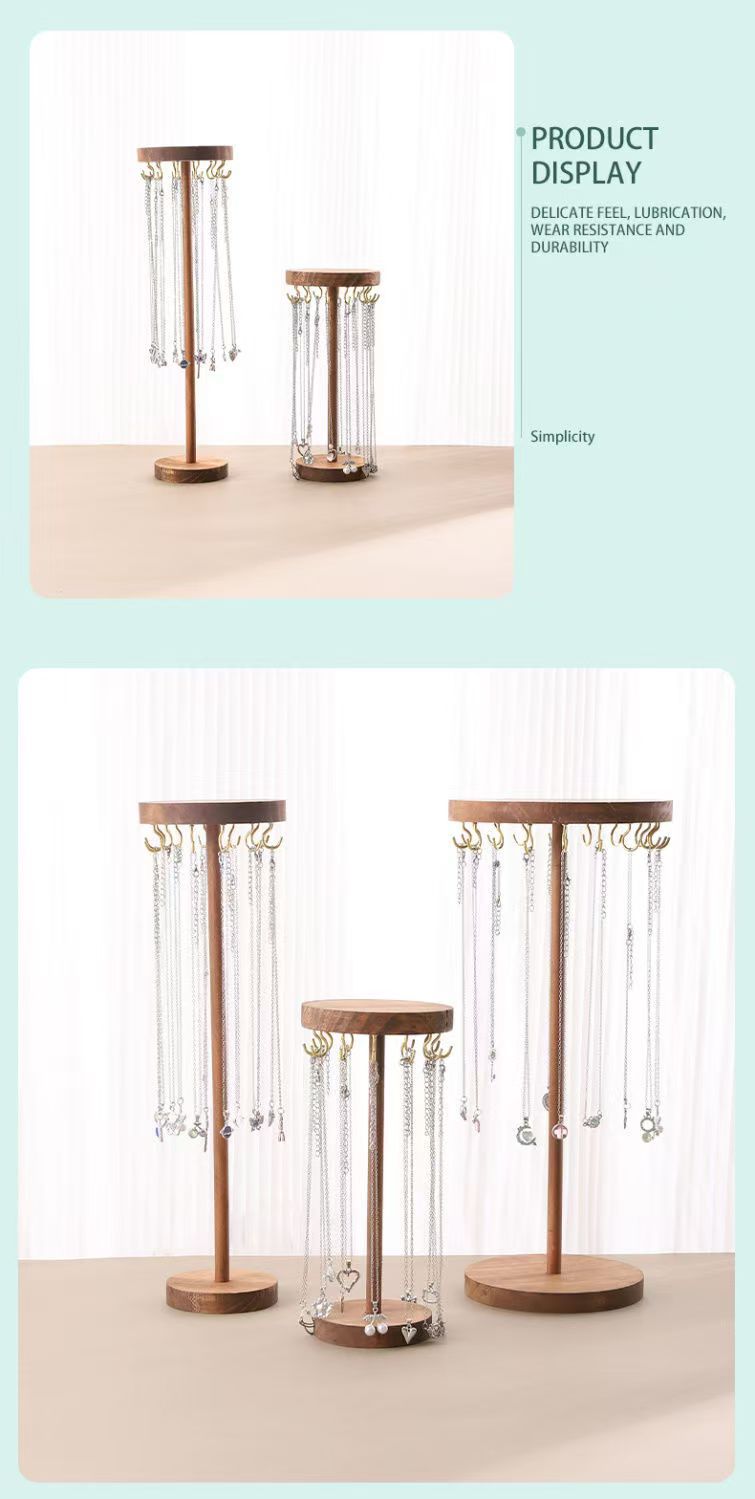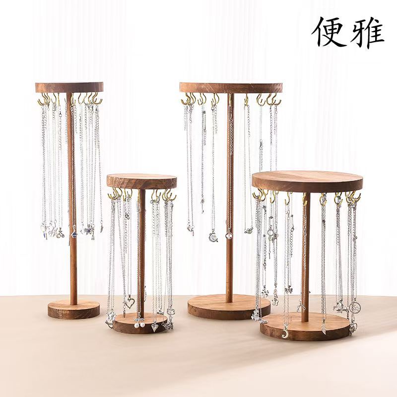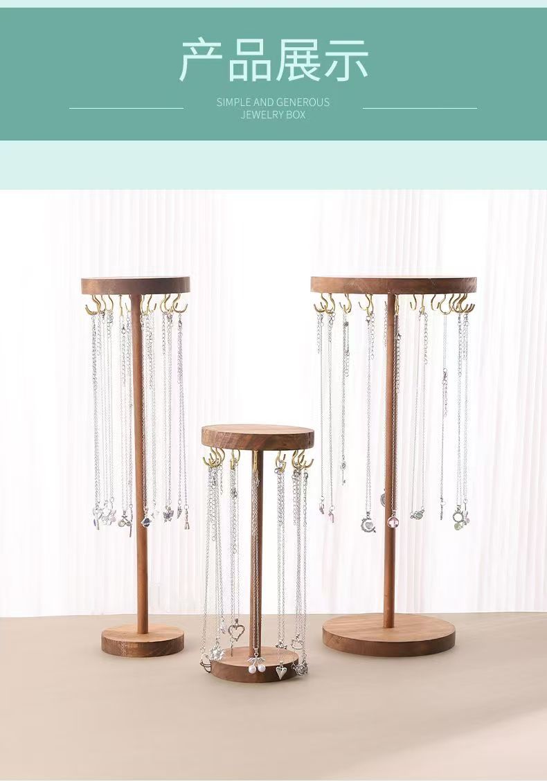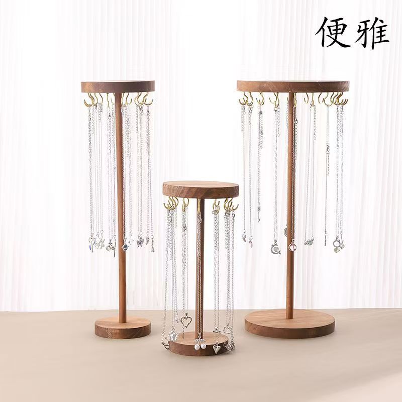 胡桃色実木円盤フックネックレス展示棚出店アクセサリー展示棚解体可能ジュエリー収納棚