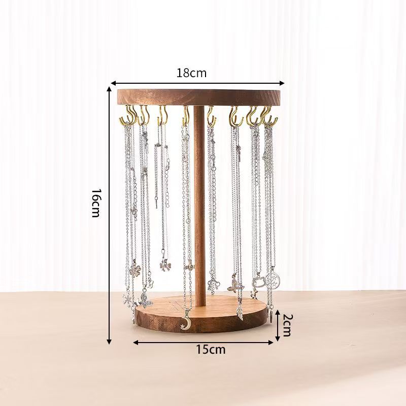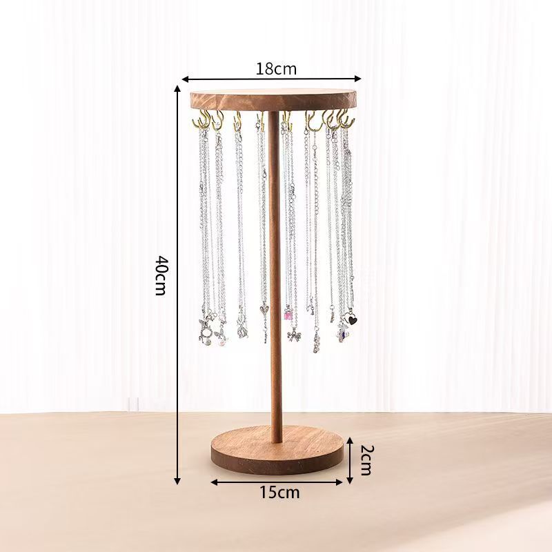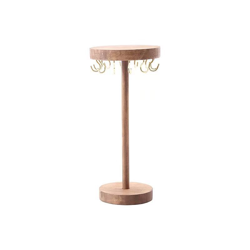 木製ジュエリーネックレス収納ディスプレイスタンド、丸型フック、ヘアゴム、ヘアバンド、ネックレス展示、越境配送