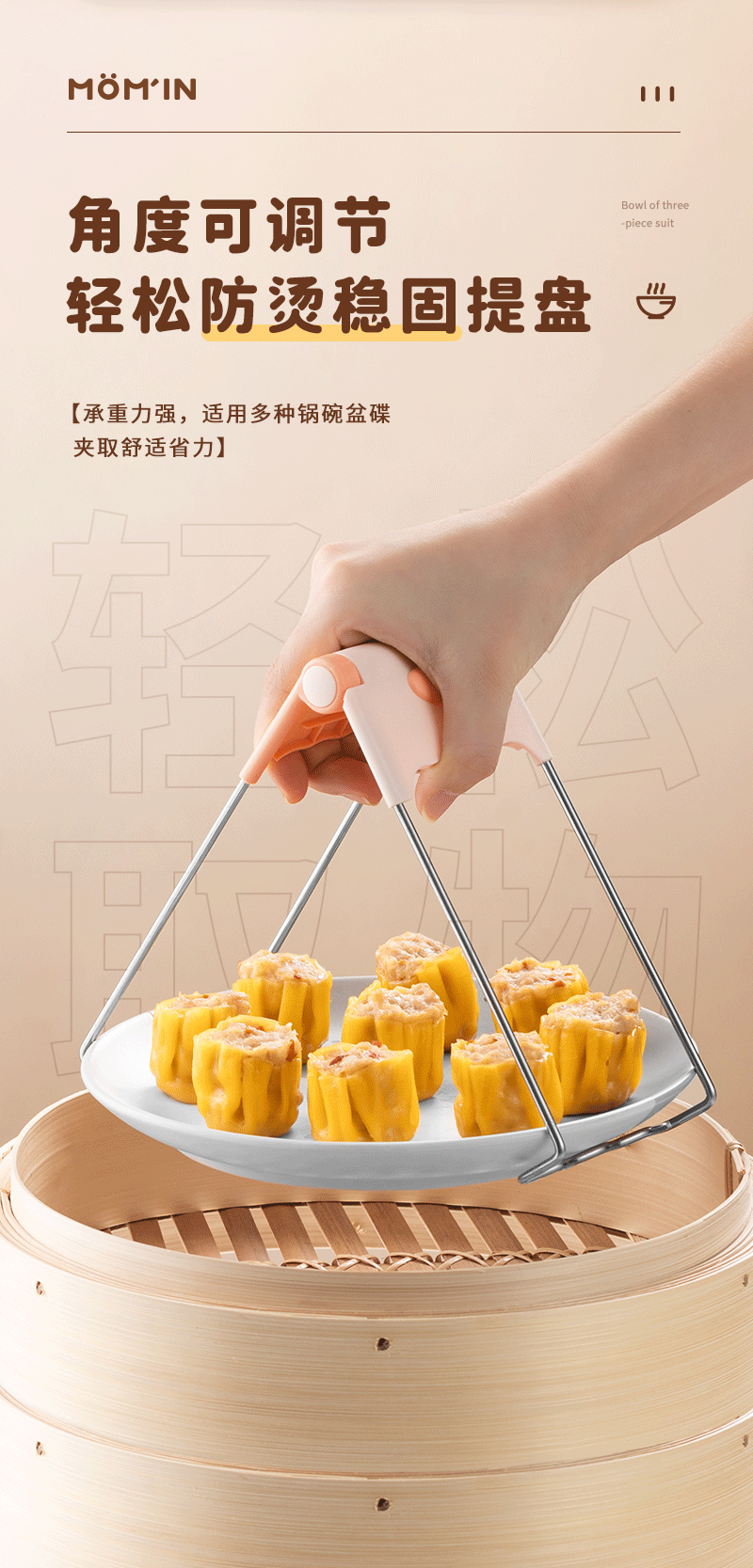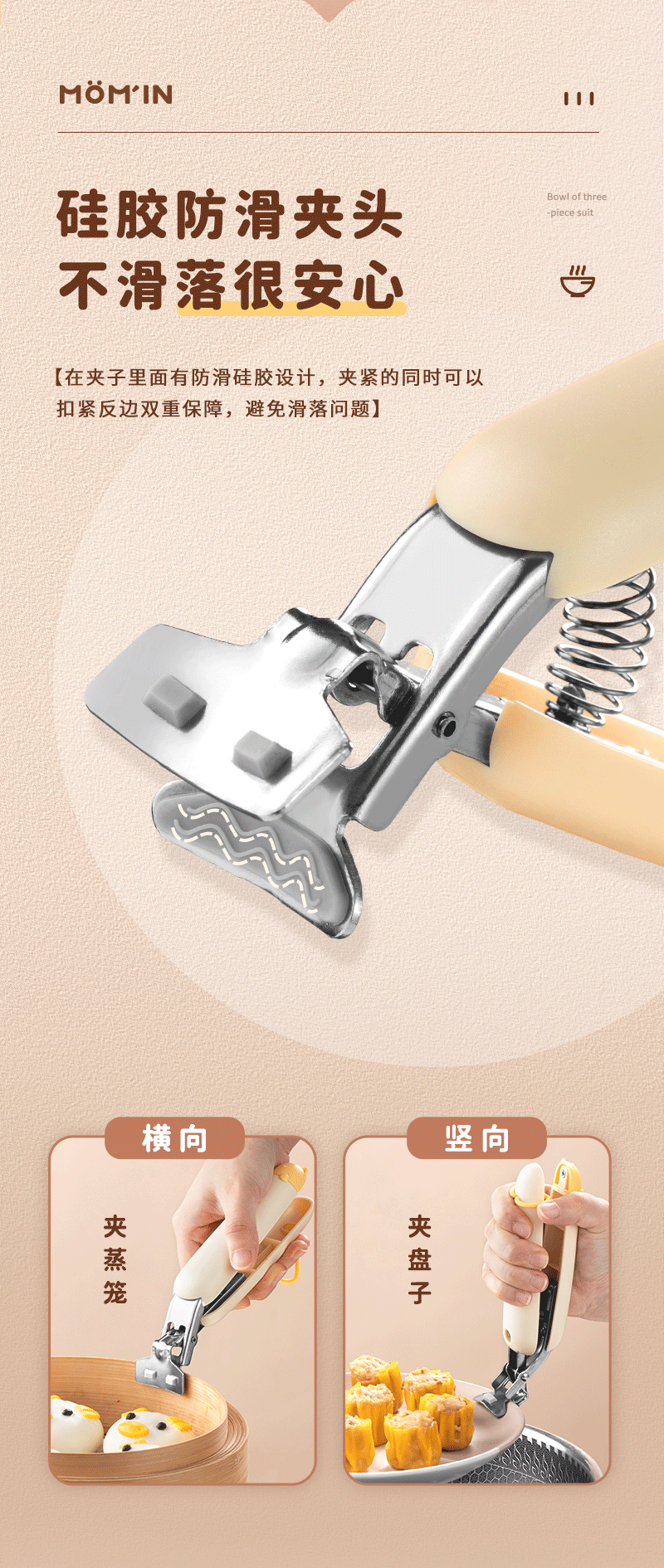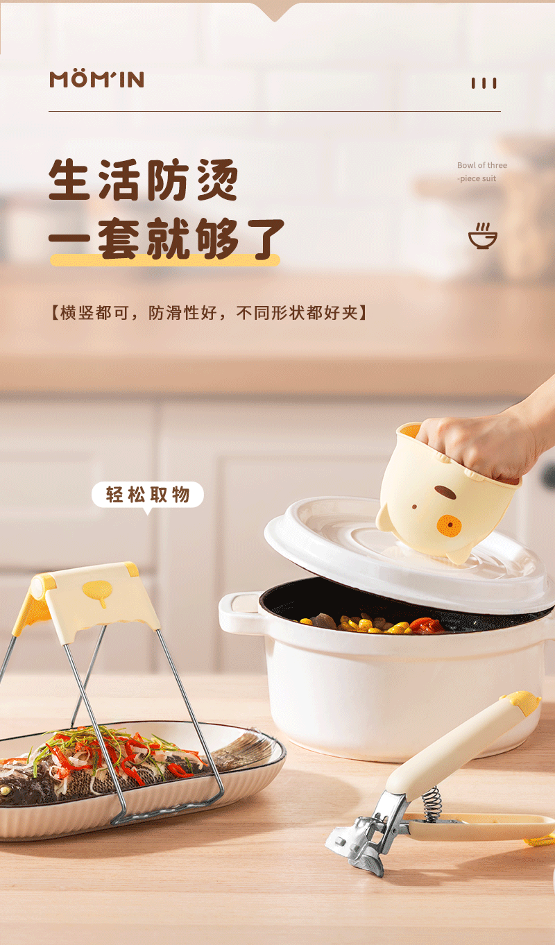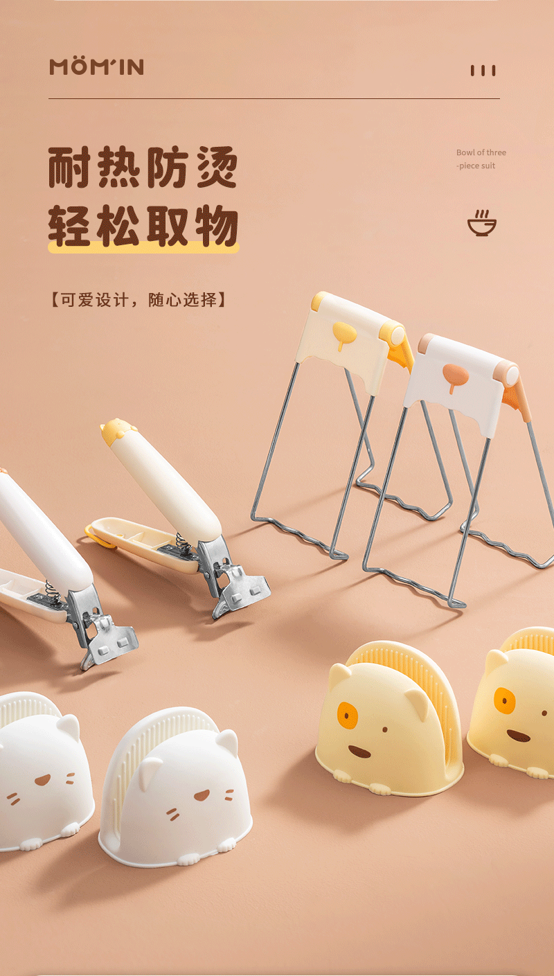 パーマ防止クリップ断熱クリップ器クリップ皿ホルダー家庭用キッチン蒸しクリップ皿3点セット滑り止め土鍋クリップ