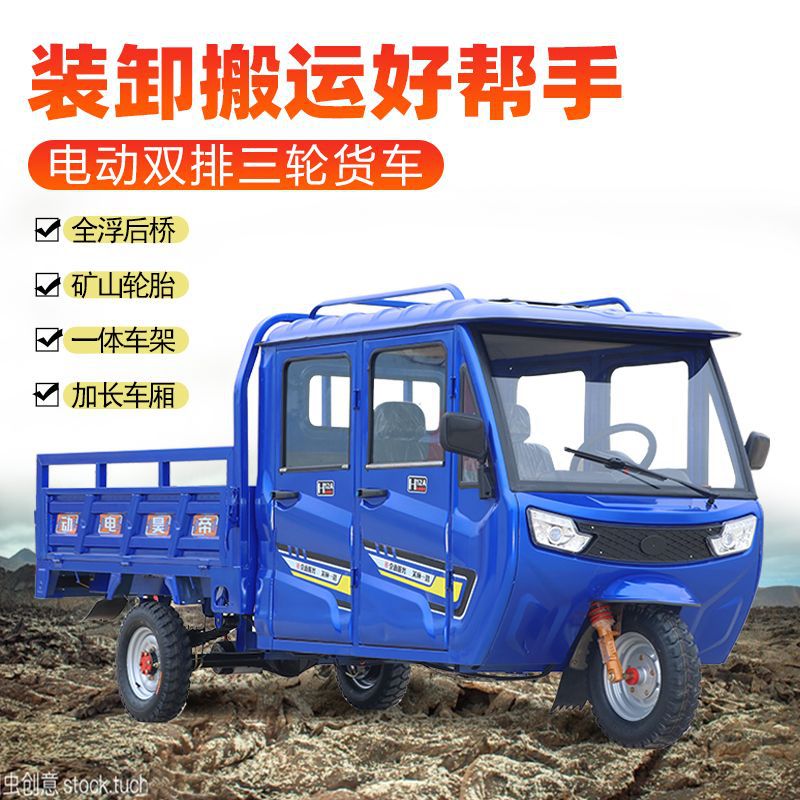 新款双排半封闭电动三轮车四门带棚半封闭货车家用载重王货运翻斗