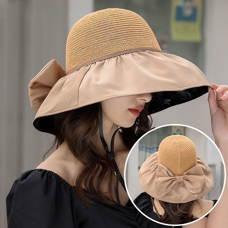 麦わら帽子の女性2025新型夏の透かし彫りの麦わら帽子は日焼け止めの帽子を旅行します。