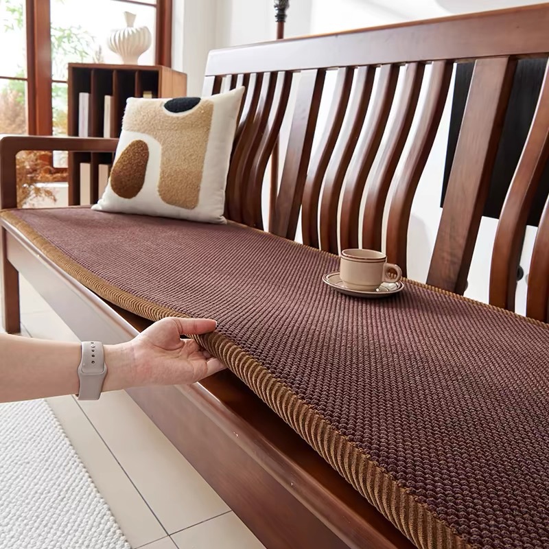四季通用のリネン製赤木ソファクッション、中国風厚手スポンジクッション、取り外し可能で洗える滑り止めシートクッション、無垢材対応