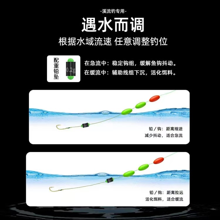 反底子線二重フックは鉛を走って、水に抵抗します。