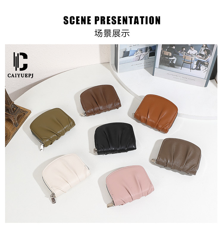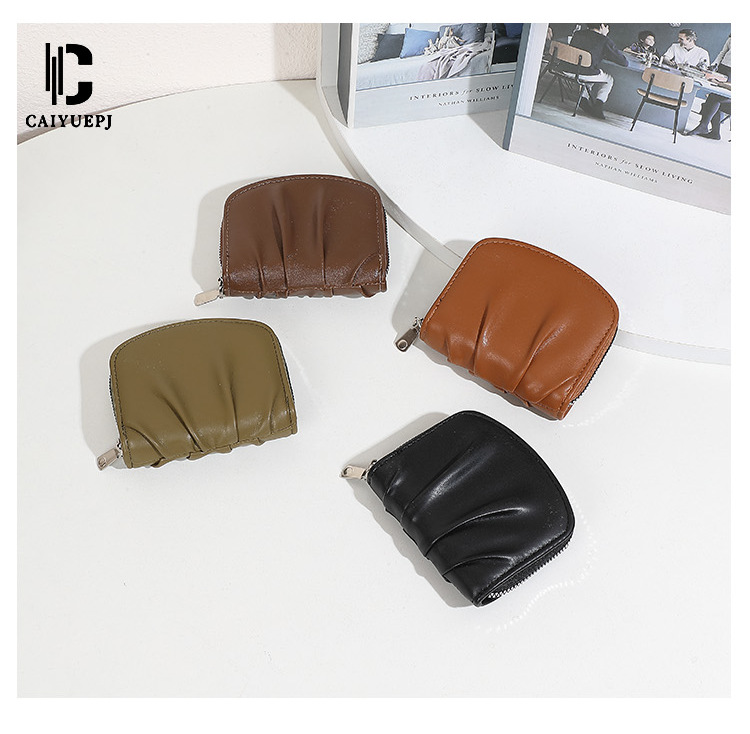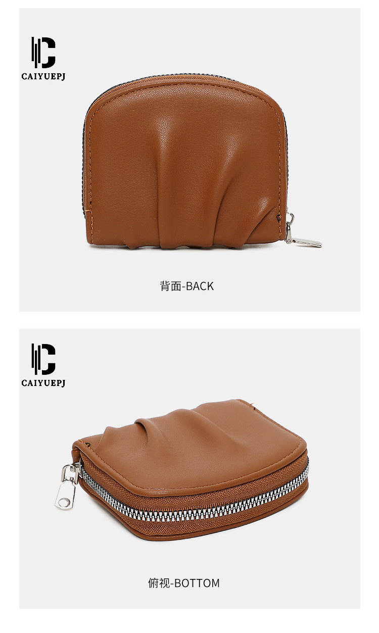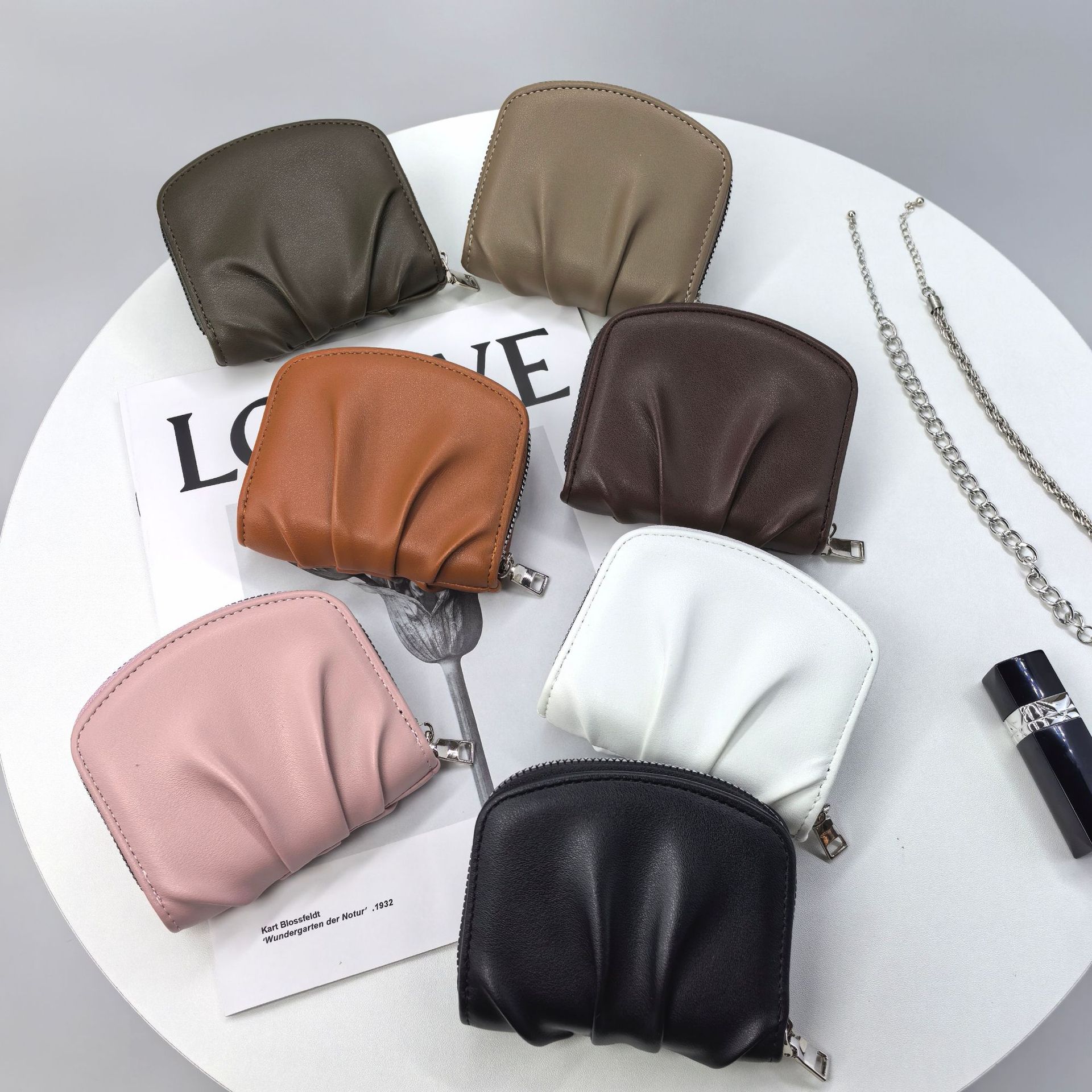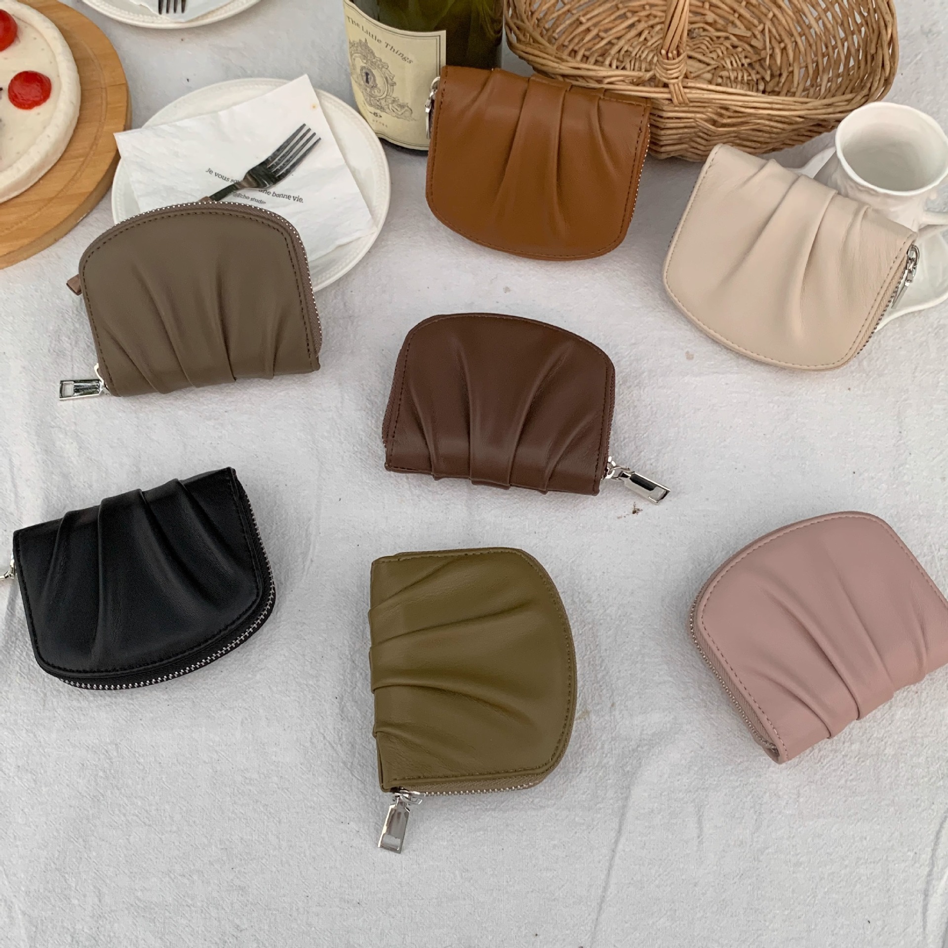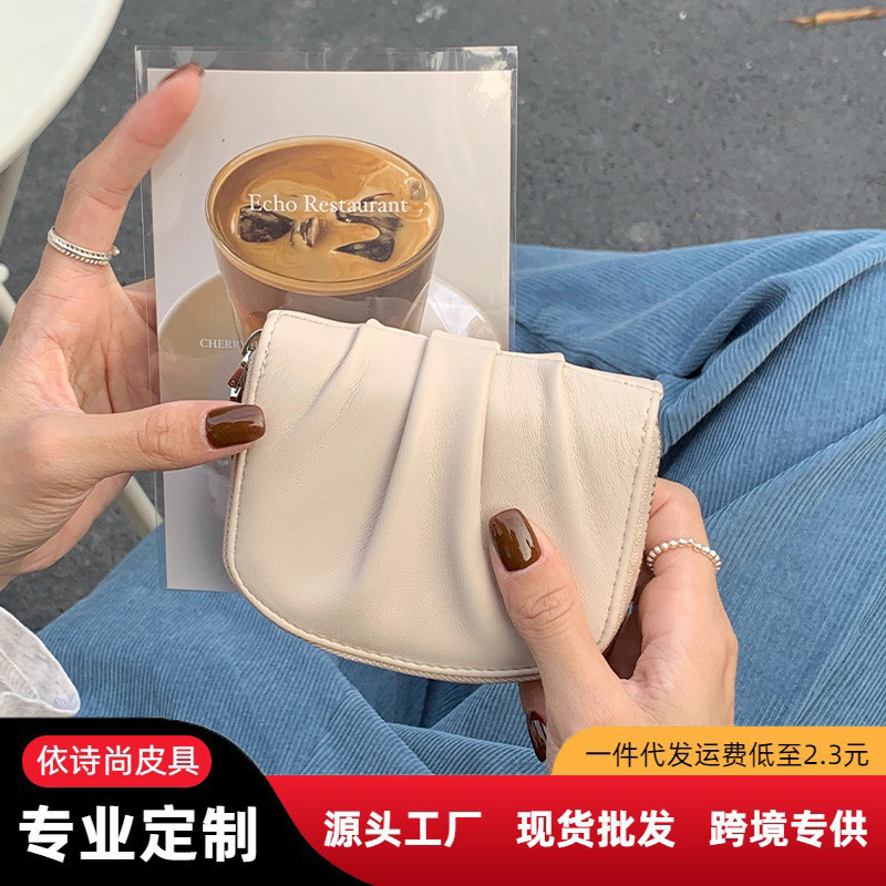 跨境新款半圆褶皱女士钱包简约女可爱小巧钱包网红纯色百搭零钱包