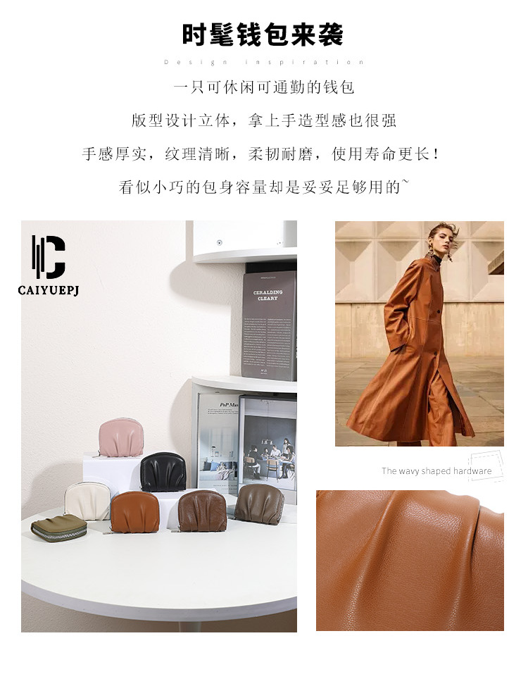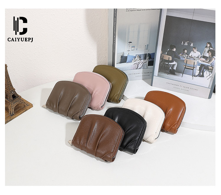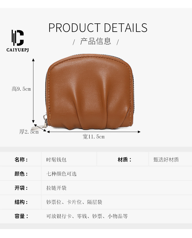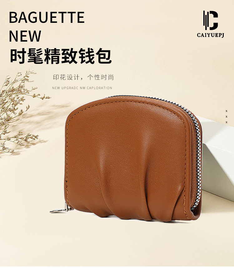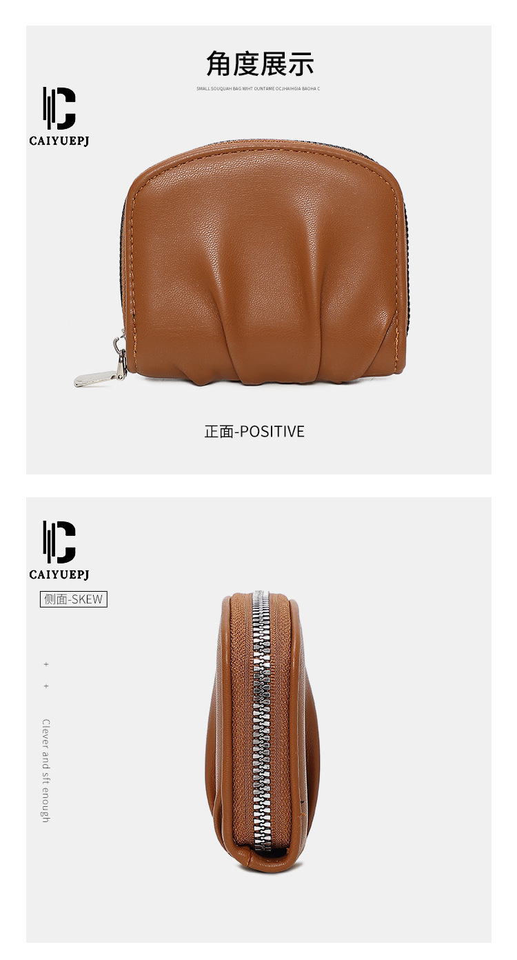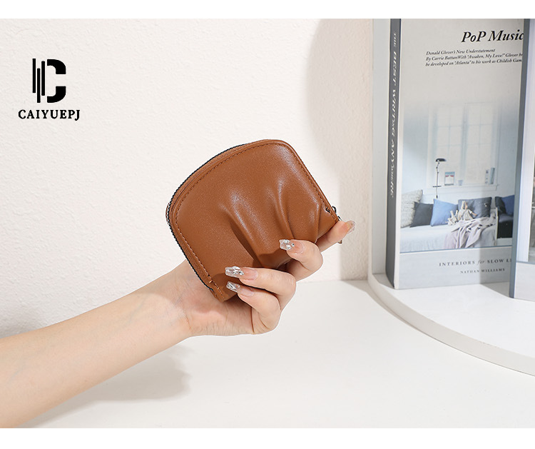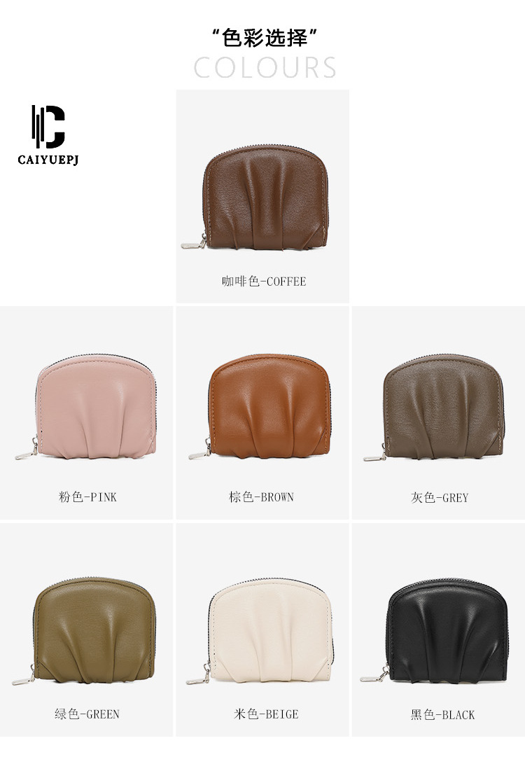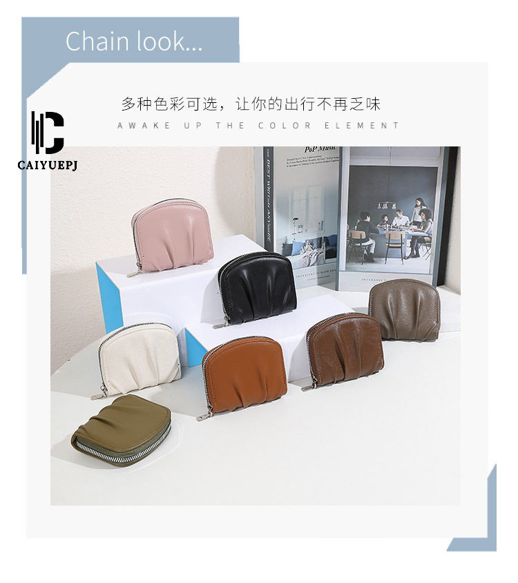 跨境新款半圆褶皱女士钱包简约女可爱小巧钱包网红纯色百搭零钱包
