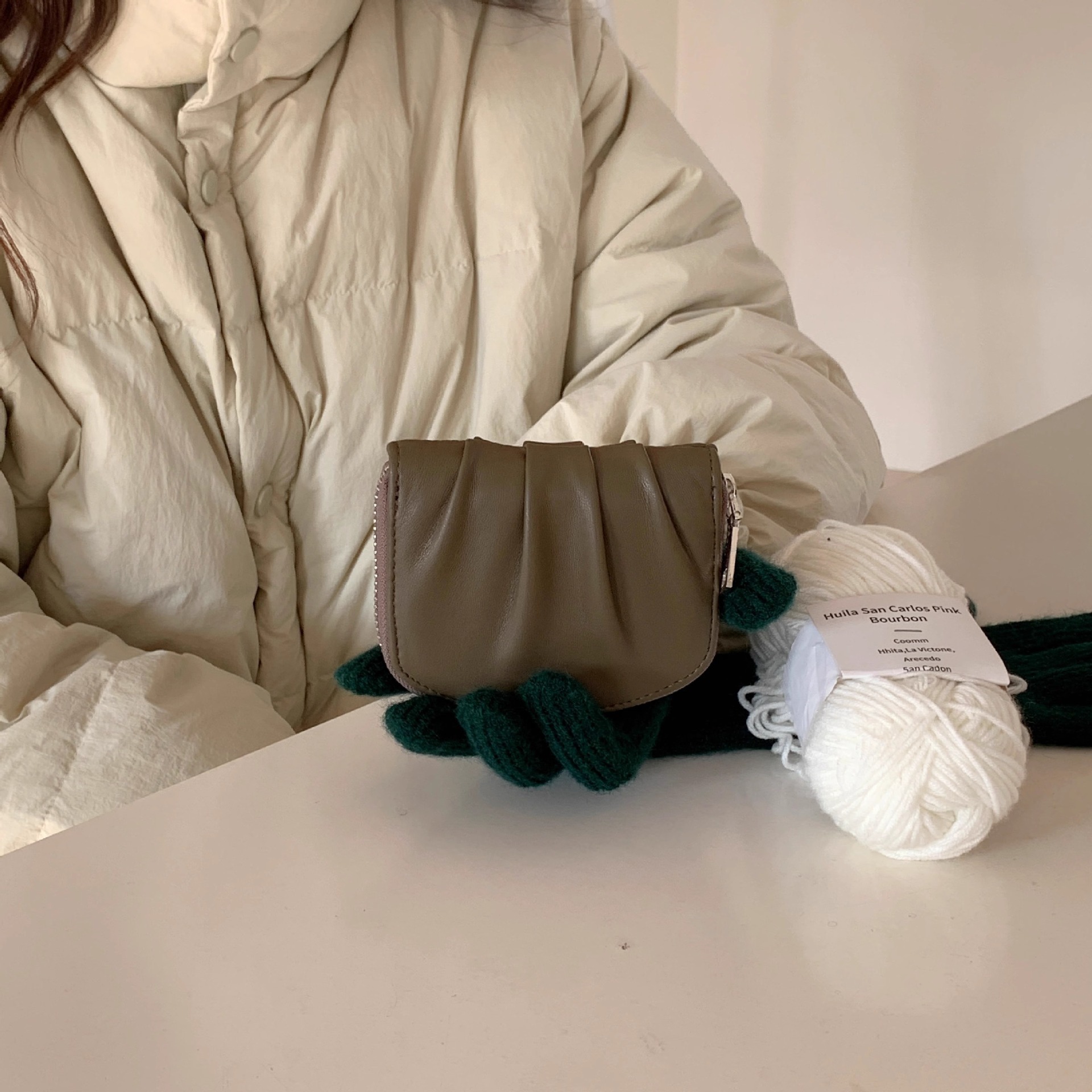 新客时尚褶皱感INS新款简约女可爱小巧钱包网红纯色百搭零钱包