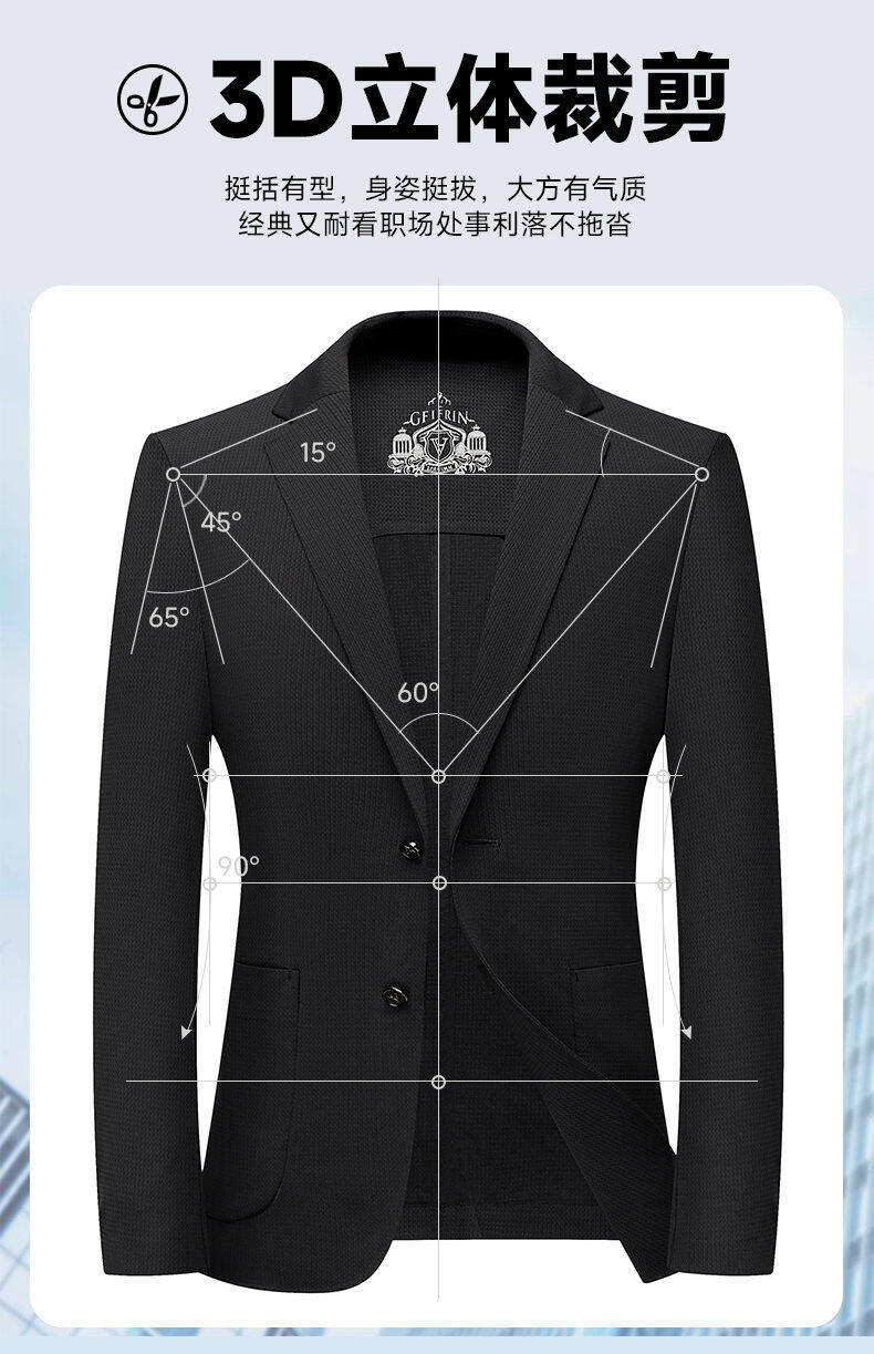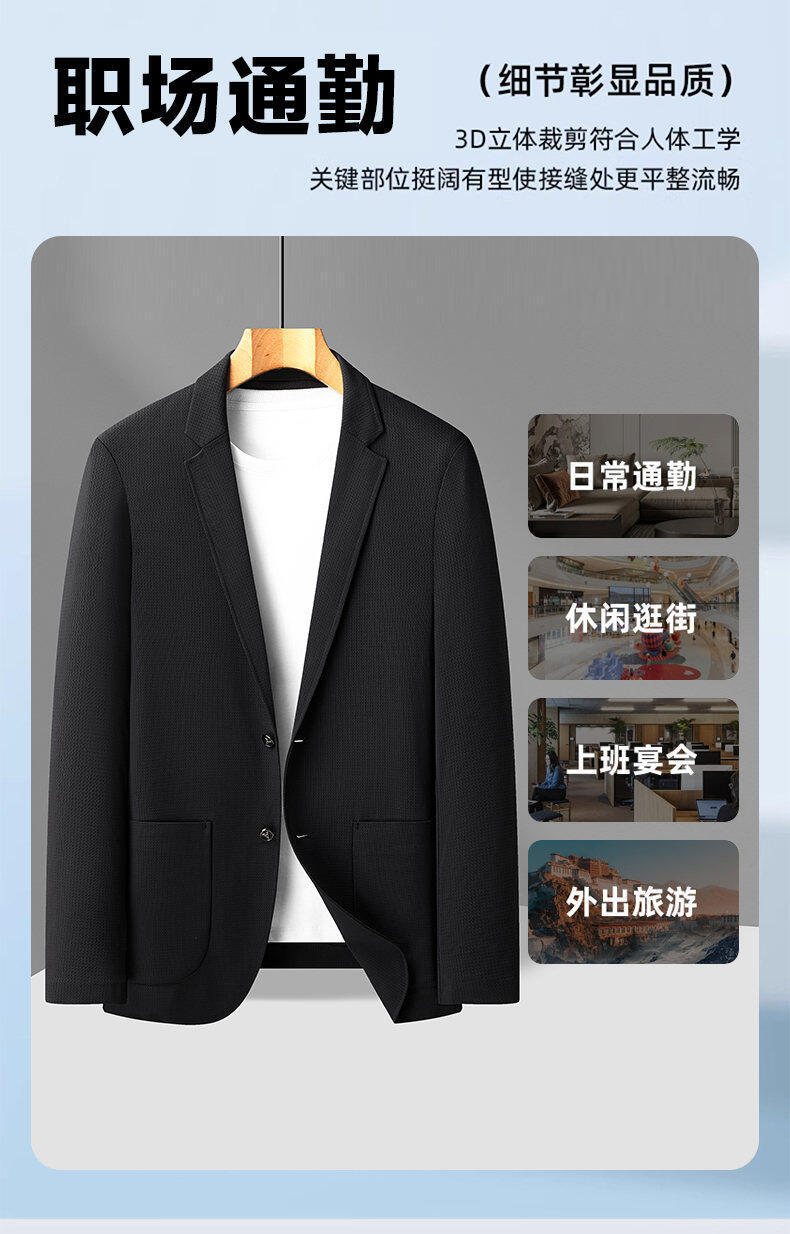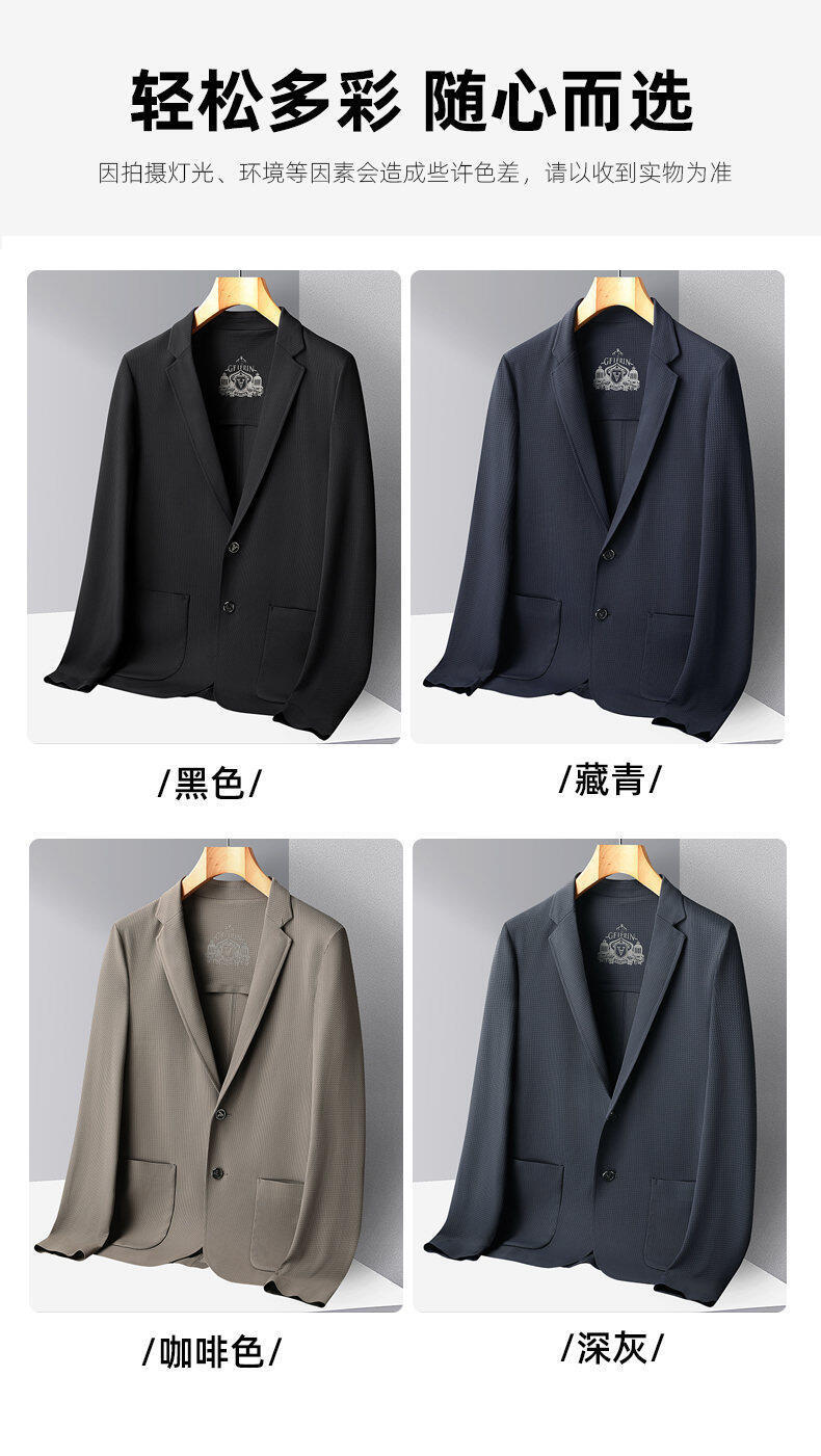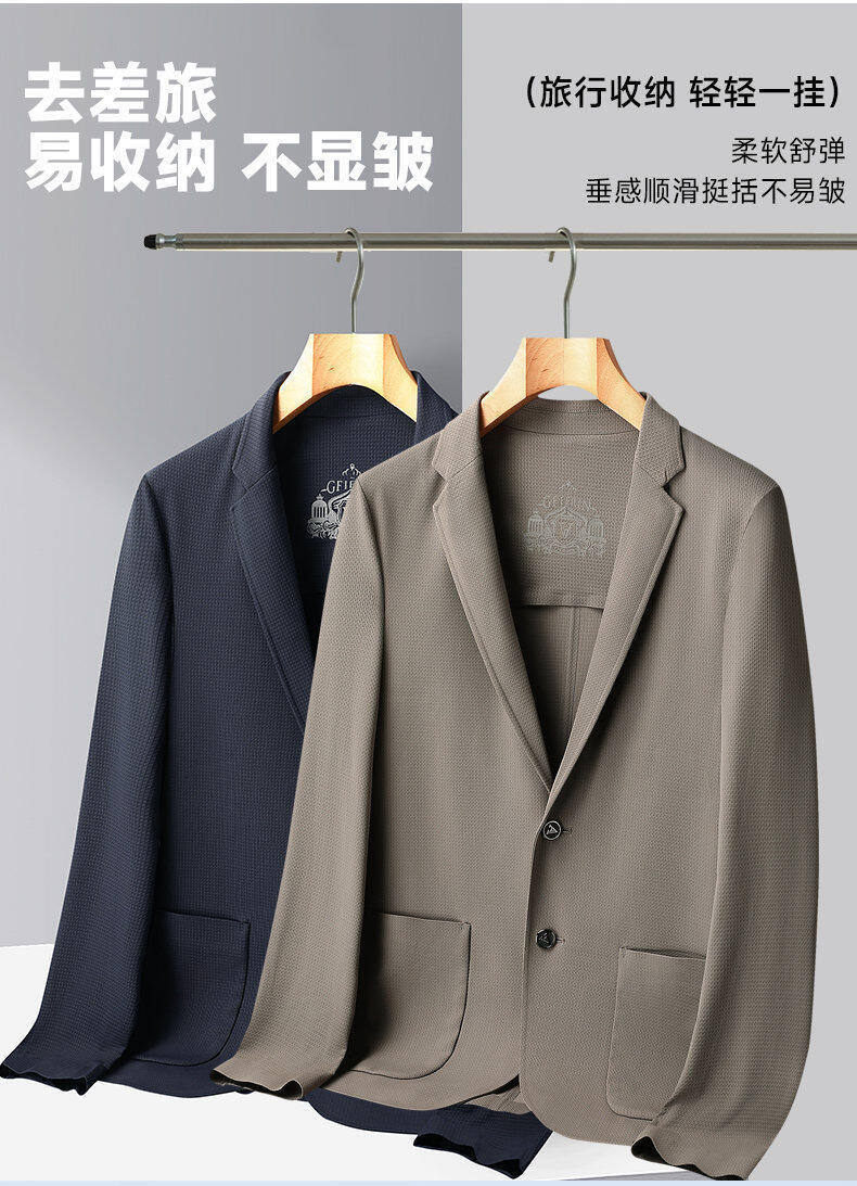 ワッフル高弾氷糸無痕スーツ男2024夏の薄いタイプの日焼け止めスーツの垂れ下がった感じの西男コート