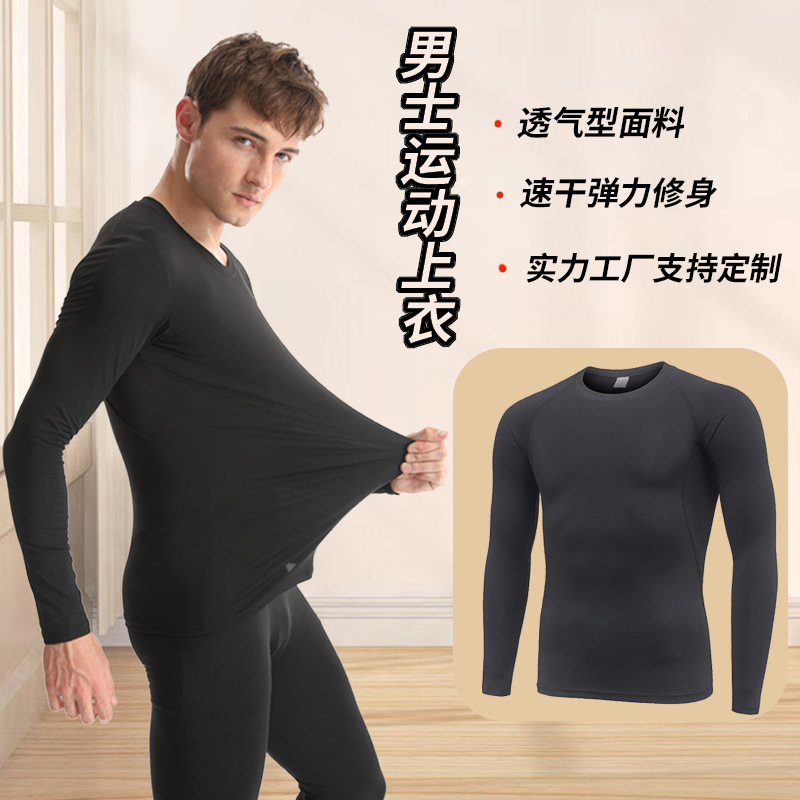 クロスボーダー現物スポーツウェアセット男性マラソントレーニング服秋の通気性速乾底衣フィットネスセット