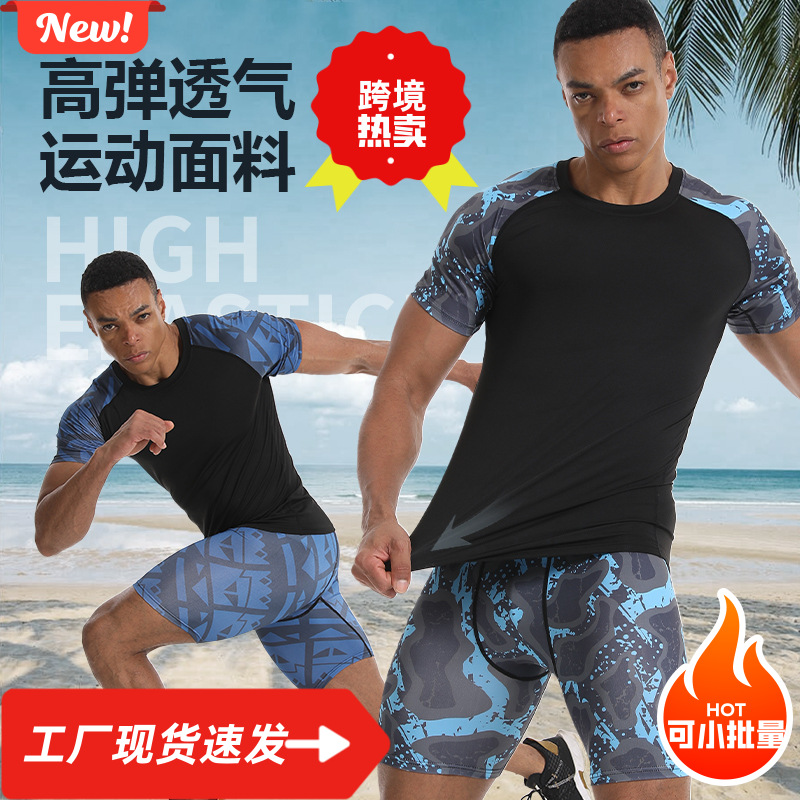プリントタイツ メンズ スポーツウェア 通気性 フィットネスウェア サイクリング トレーニング 半袖 ランニング ベースレイヤー 速乾性ウェア 工場直販