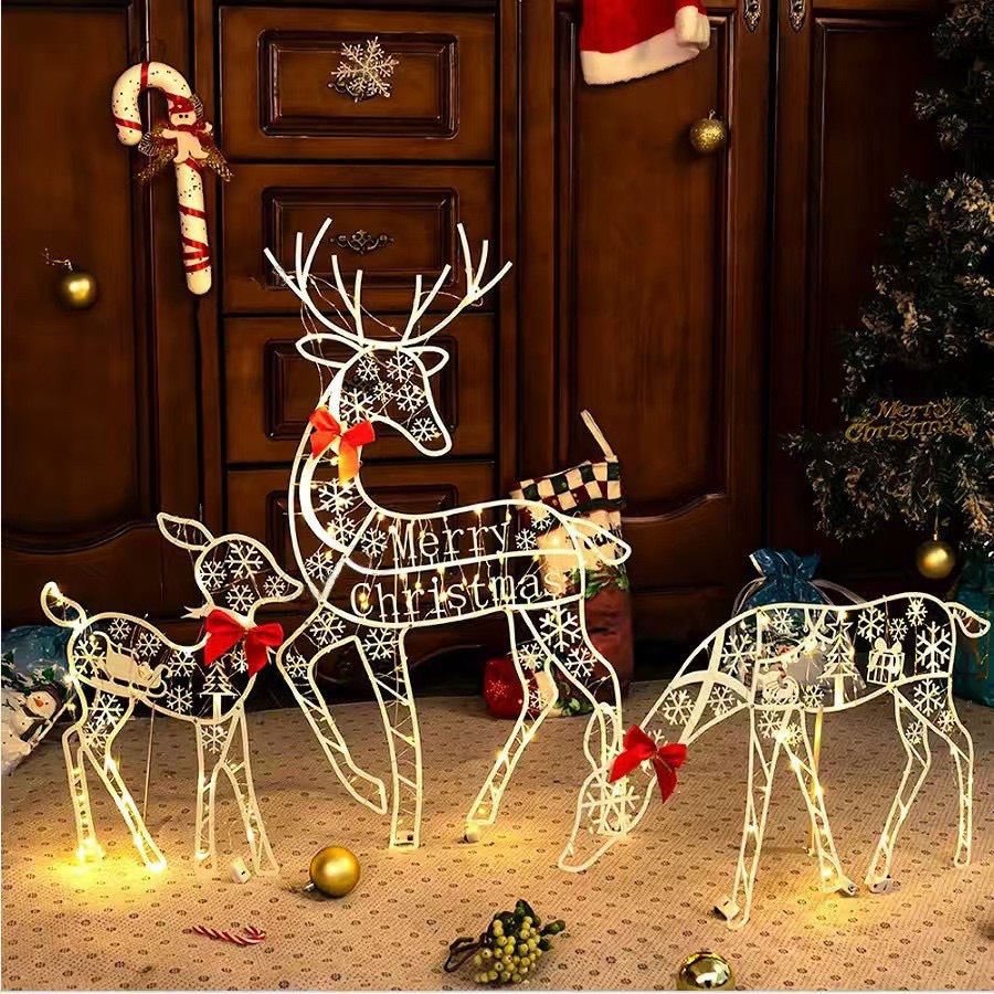クリスマス新作屋外装飾金属発光鹿三点セット園芸芝生装飾置物屋外クリスマス装飾