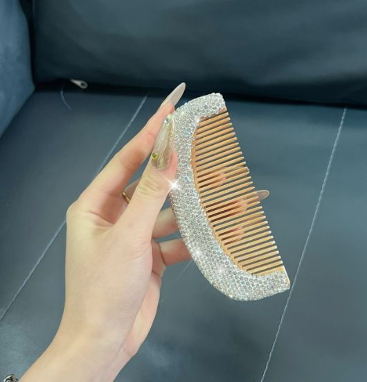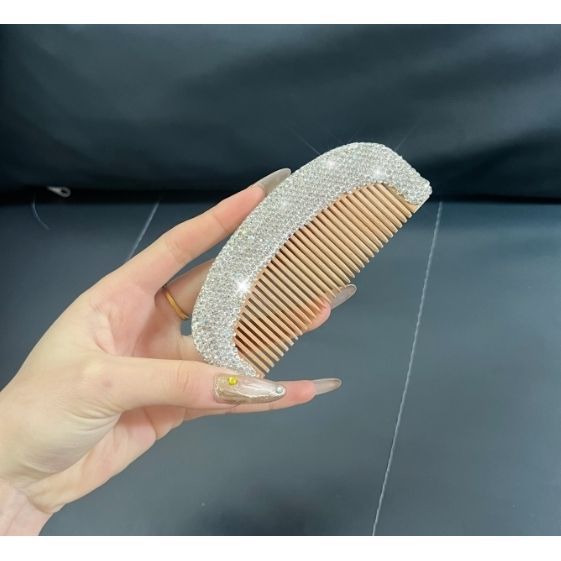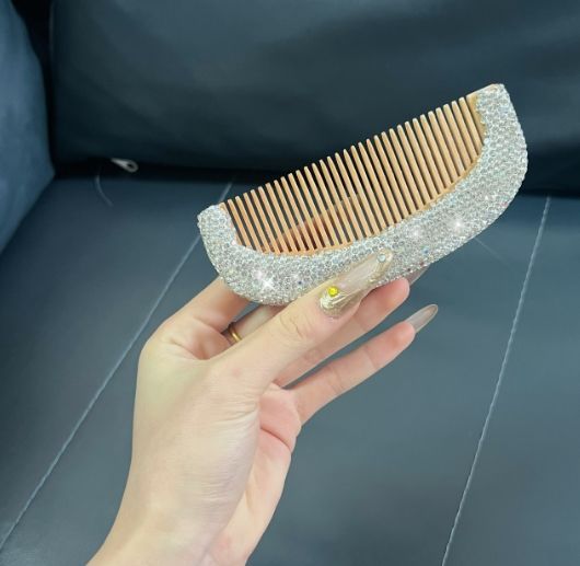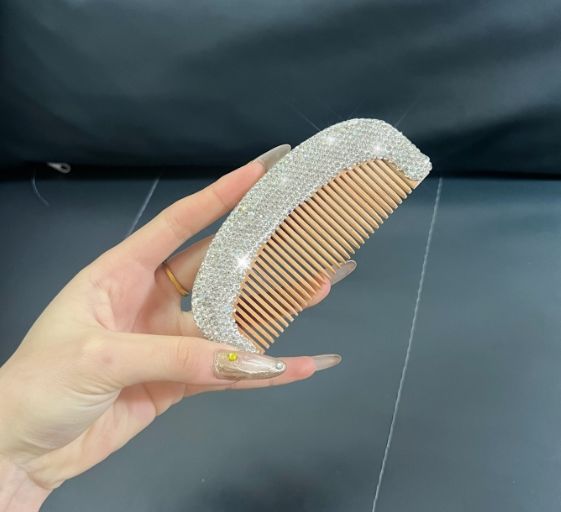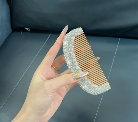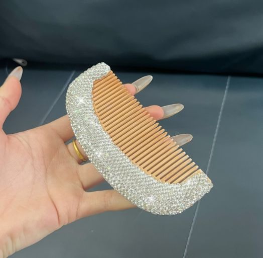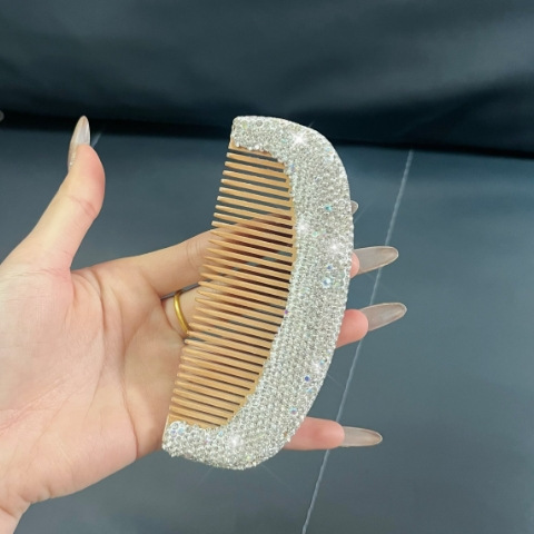 XZ9322 ダイヤモンドがちりばめられたポータブル木製コーム ホワイト ダイヤモンド