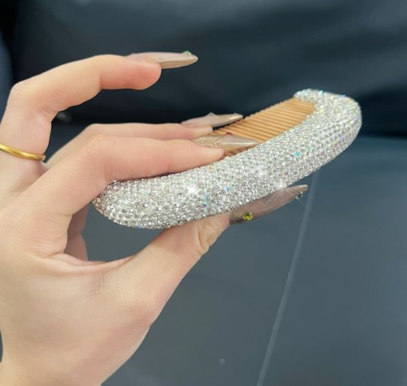 跨境爆款奢华创意贴钻化妆梳子按摩梳 水晶镶钻木质随身便携女士