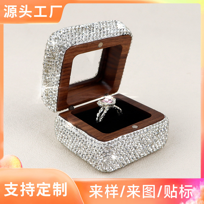 高颜値満ドリル豪華白ドリル指輪箱桃木入れドリル携帯指輪収納箱結婚プロポーズカスタマイズ可能