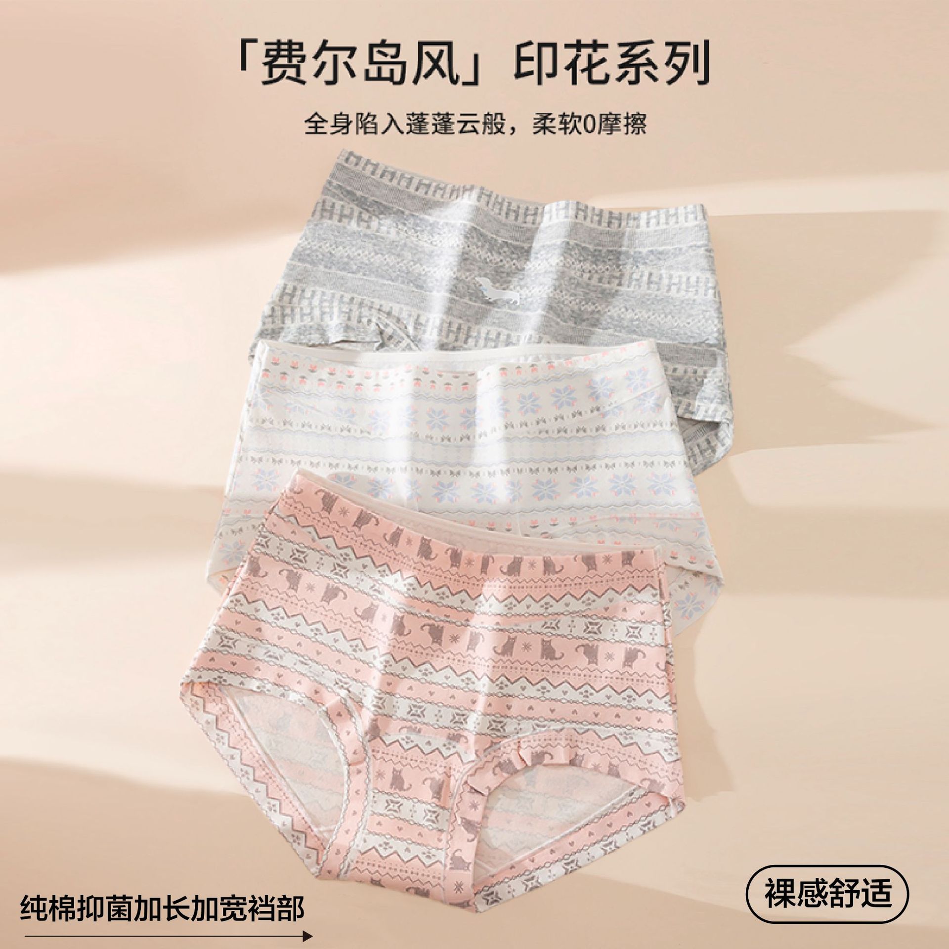 费尔岛内裤女生纯棉新款10A抗菌加长裆平角裤女大码a类棉包臀三角