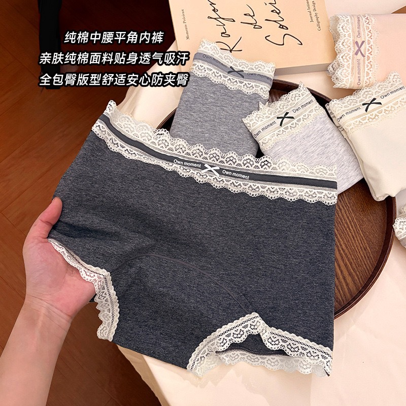 纯棉中腰平角裤女大码内裤10A抗菌加长底裆亲肤包臀无痕内裤蕾丝