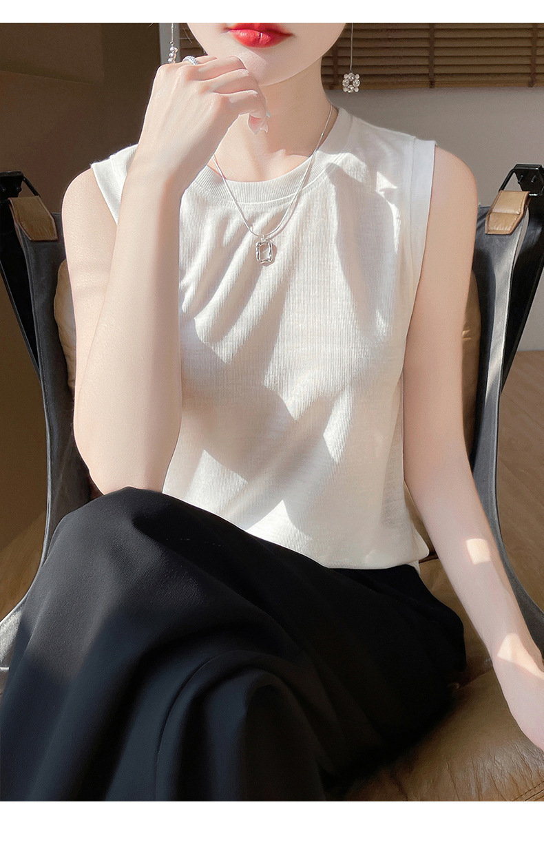 非常にシンプルなファッション女性の精紡の薄いタイプのベスト春夏の新型の丸首のカバーのニットの中にストラップを掛けて卸売りします。