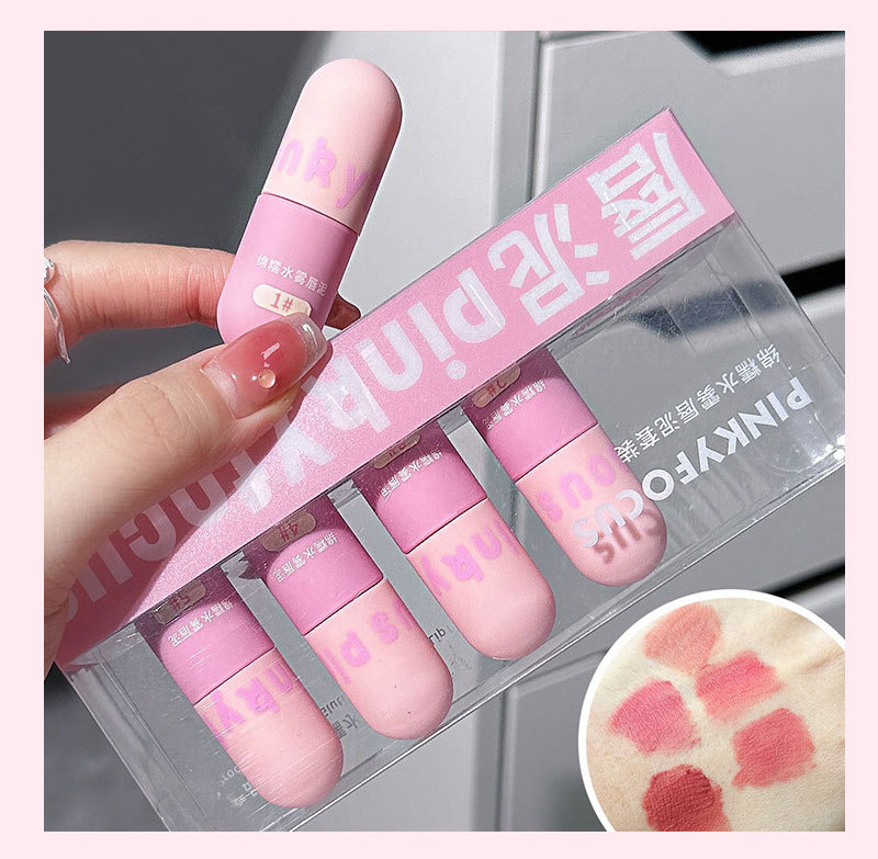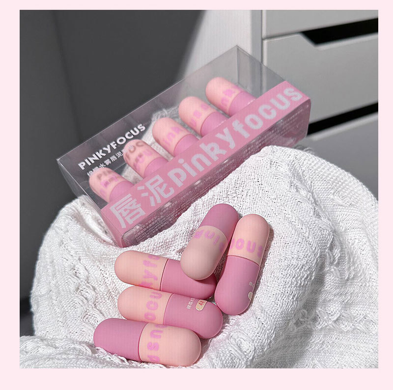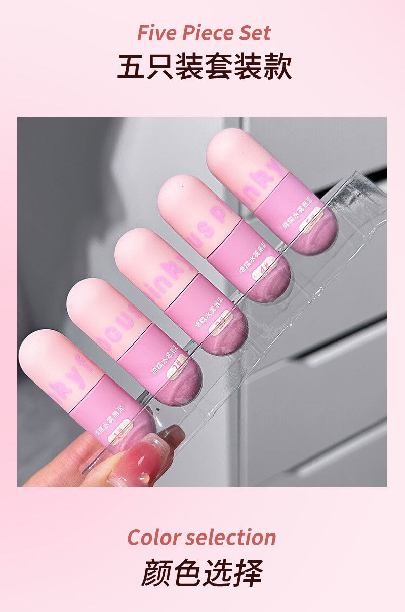 5本のカプセルの唇の釉薬の口紅の箱の霧の顔のつや消しのシルクの学生の平価のかわいいサンプルの唇の泥の女性は白く現れます。
