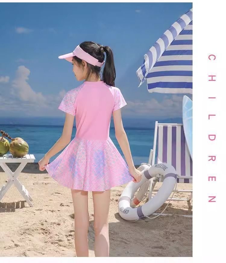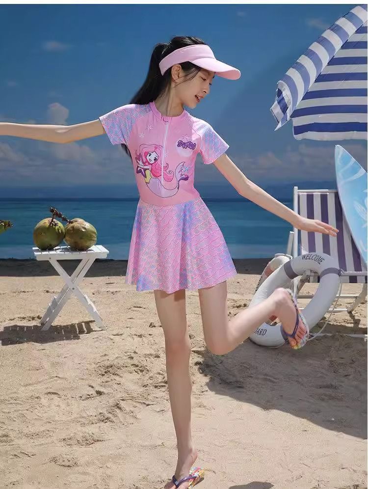 子供スプリット水着女の子2025新しいかわいいマーメイド水着女の子ファッション甘い半袖水着