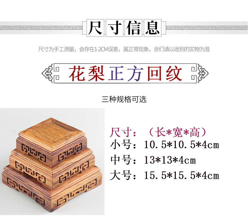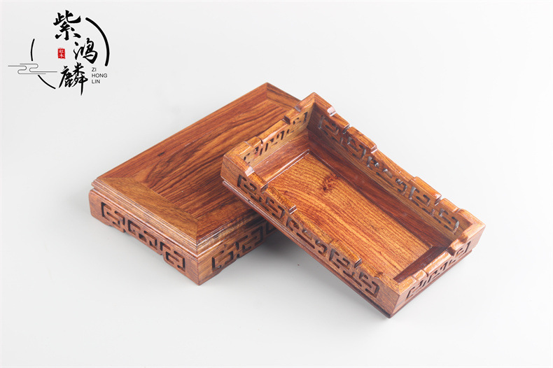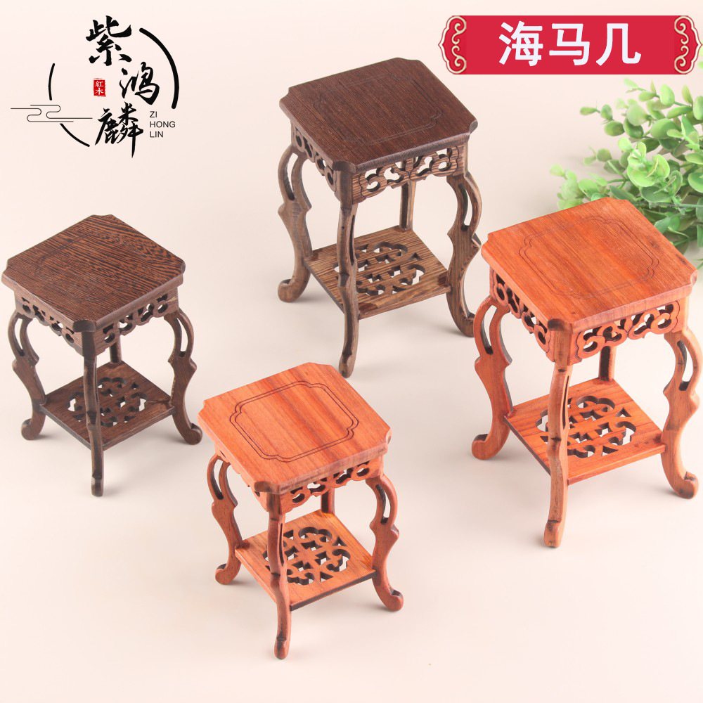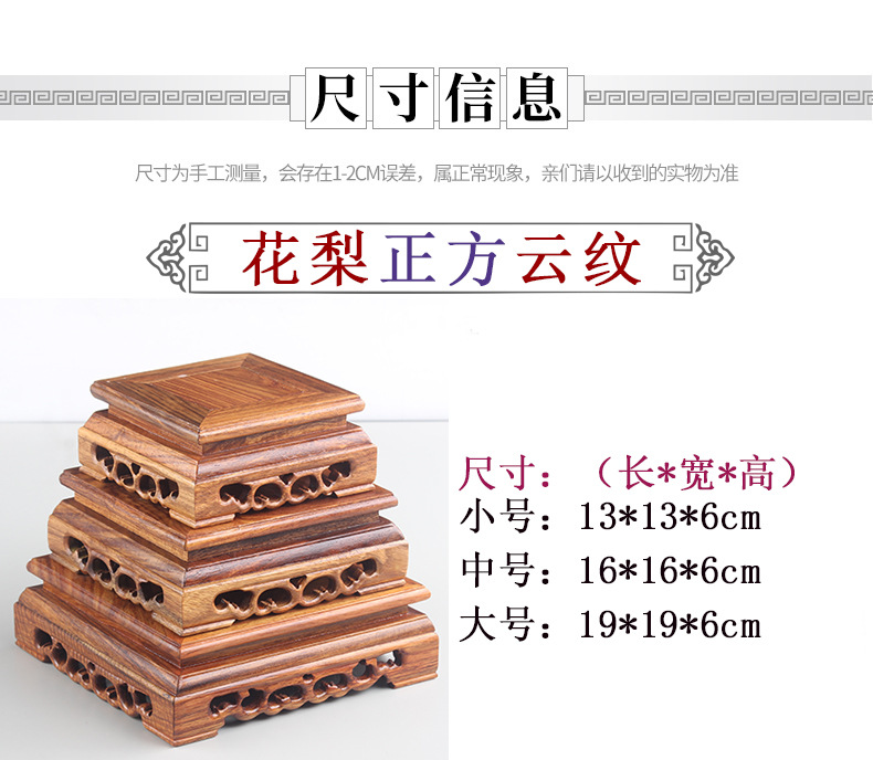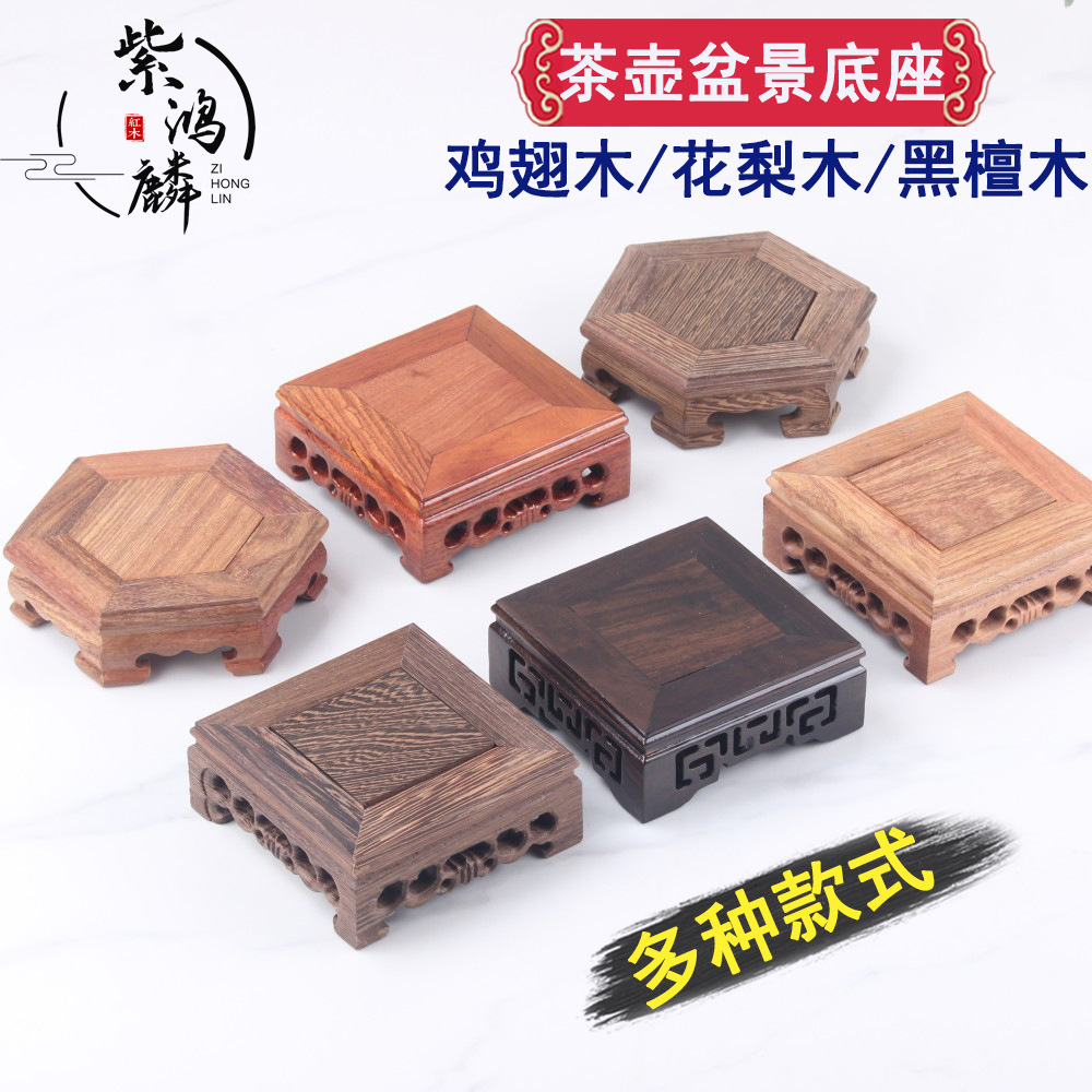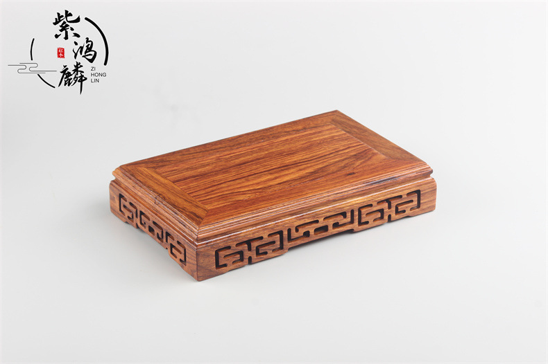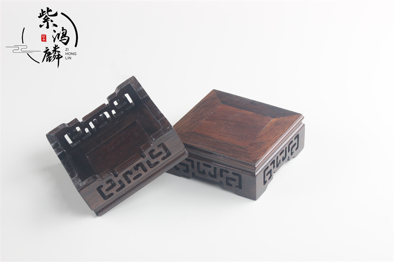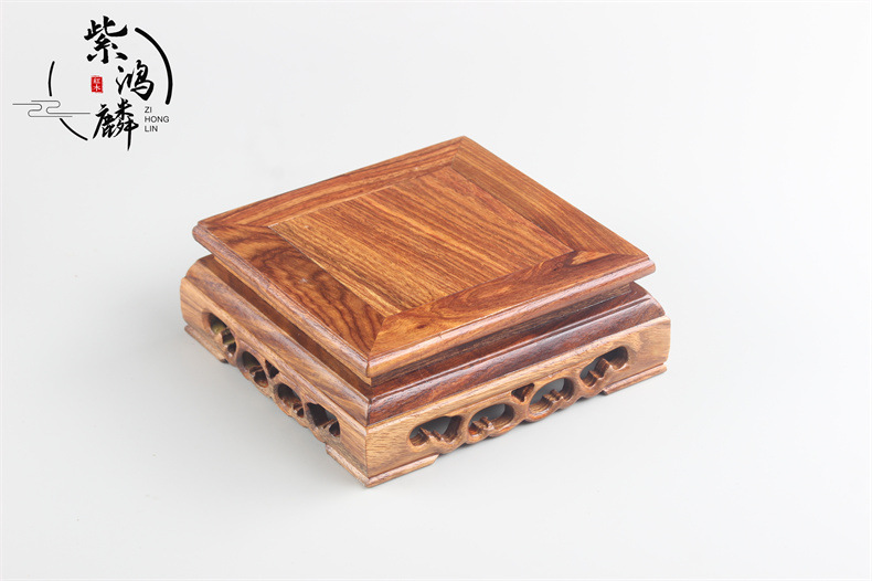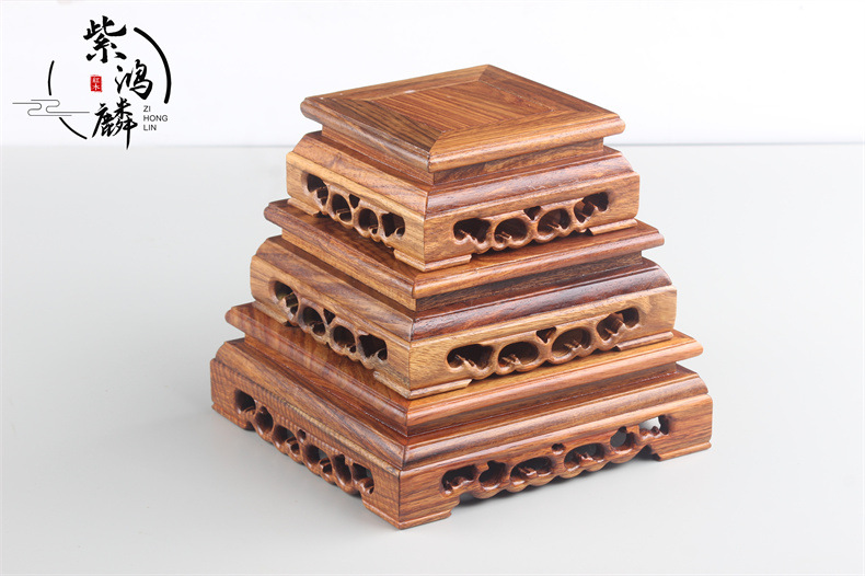 赤木彫刻工芸品置物方形木托花梨木実木奇石花盆回紋仏像台座