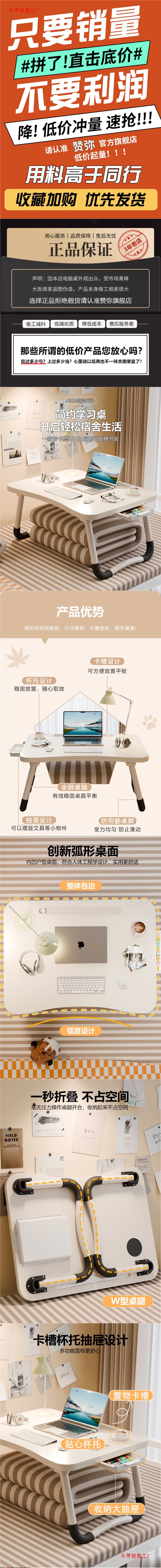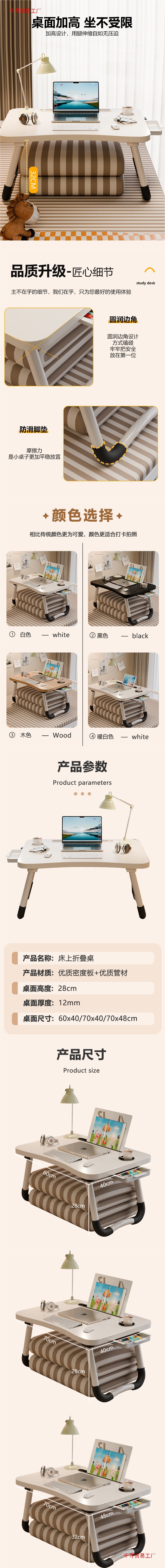 簡易折りたたみ可能なベッドの上の小さいテーブルは机のノートパソコンの机を勉強します。