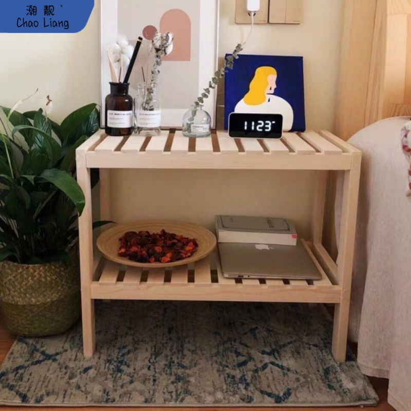 Ins風北欧ベッドの頭の棚の骨格の実木の棚が床に落ちている木製の窓の収納棚の寝室の木の棚
