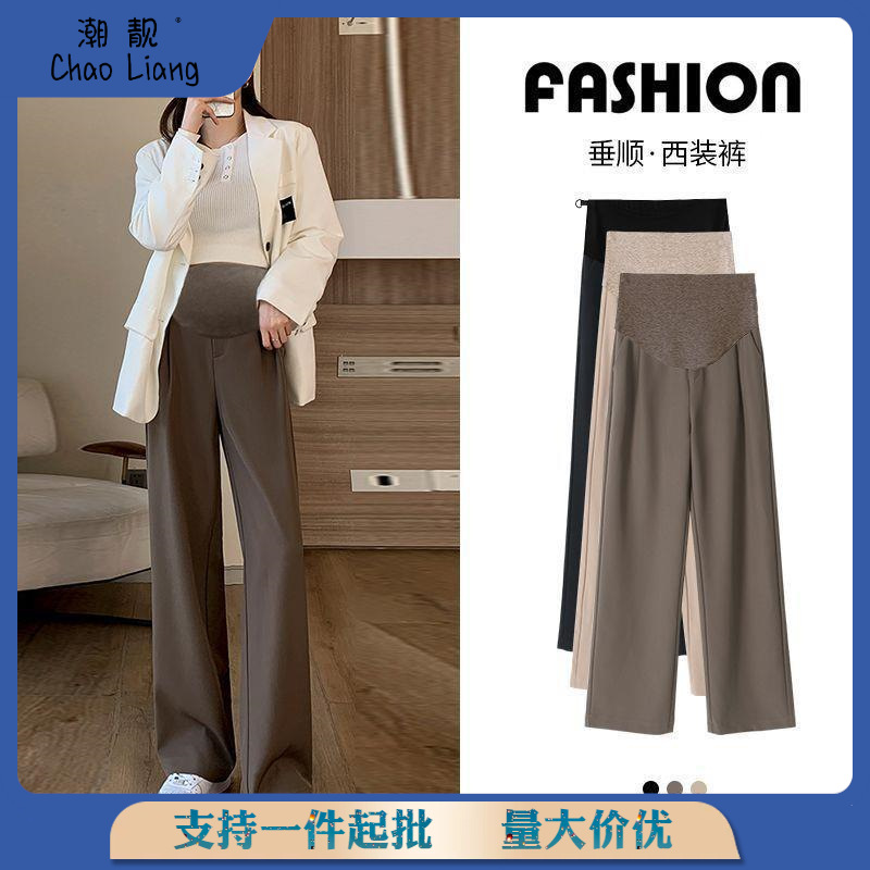 妊婦用ワイドレッグパンツ、調節可能なマタニティパンツ、女性用春秋冬パンツ、カジュアルスーツレギンス、ホット