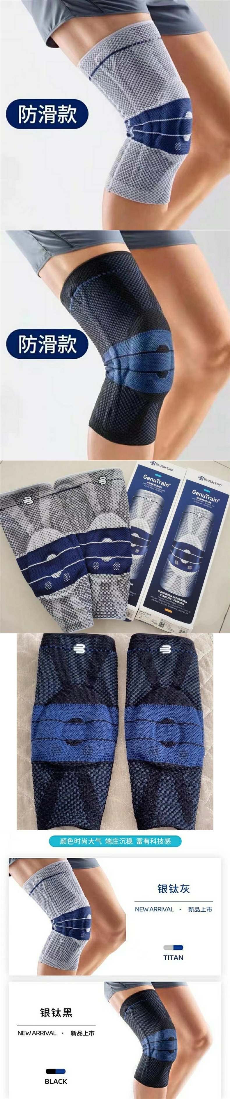 跨境德国鲍鲍代防滑弹簧硅胶运动护膝立体编织半月板篮球跑步具
