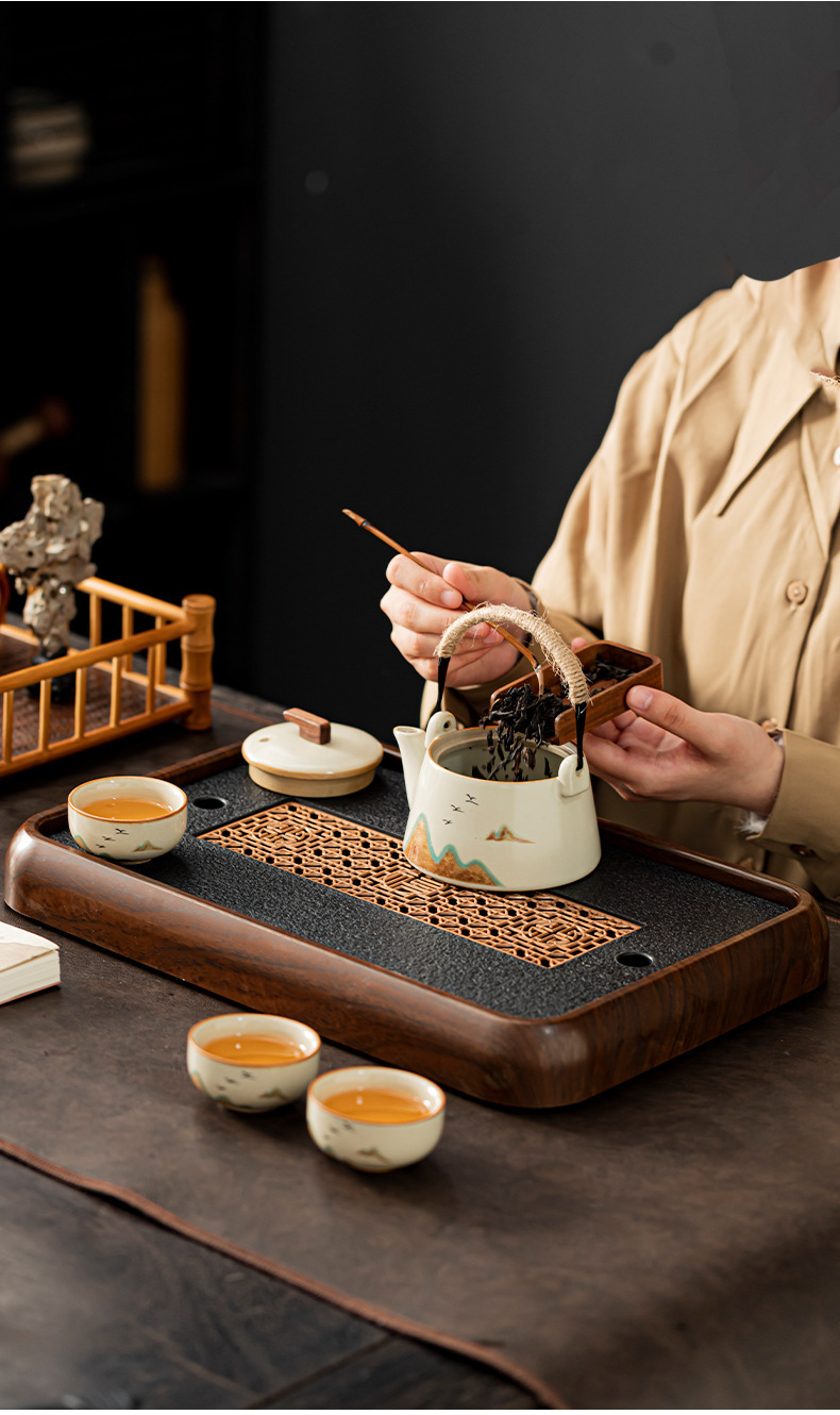 2024 新茶トレイ家庭用小型水貯蔵茶テーブルカンフー茶セット茶海乾燥泡トレイ貯蔵と排水 Ruilong