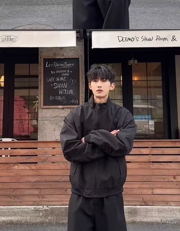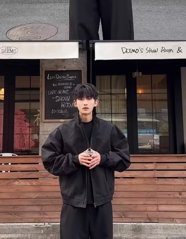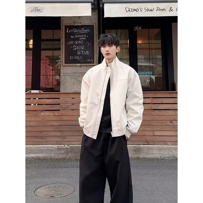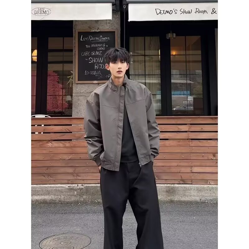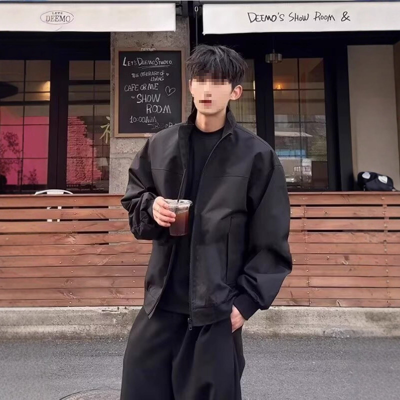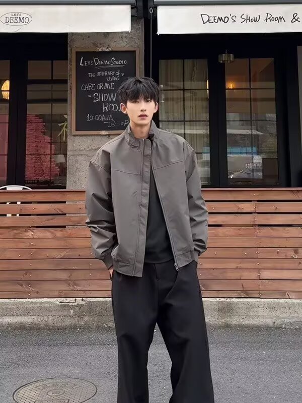 2025新型コート男性タイプ春カジュアル百合立襟上着アメリカファッションブランドレトロゆるい工装ジャケット