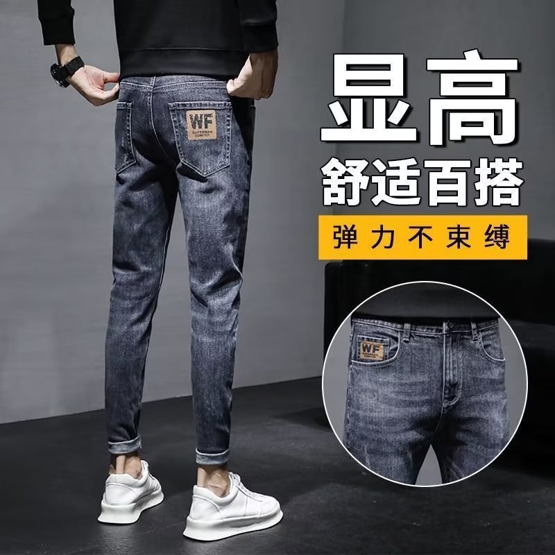 ジーパンの男性の夏の薄いタイプの弾力性の修身の小さい足の2025年の新型のファッションのブランドの男性のカジュアルな百合の9分のズボン