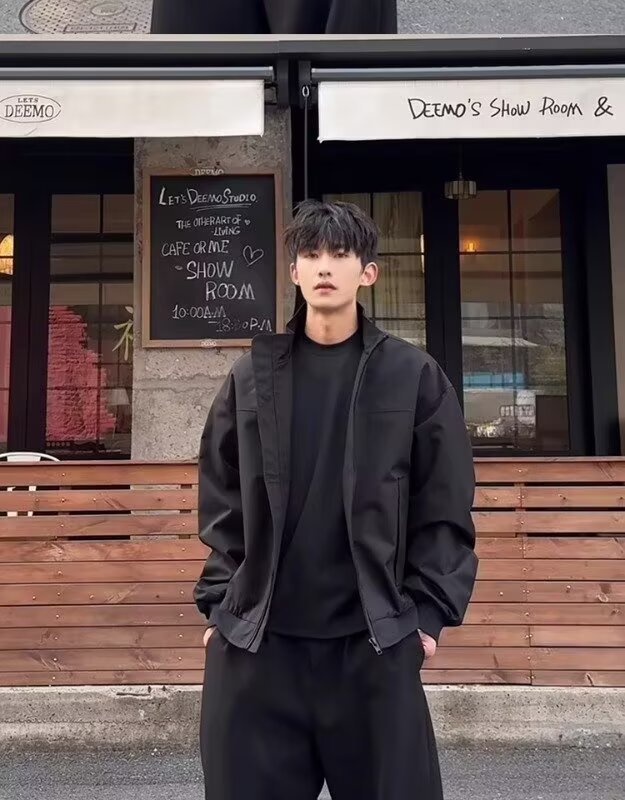 黑色美式教练飞行夹克男款感痞帅硬汉外套廓形三防立领棒球服