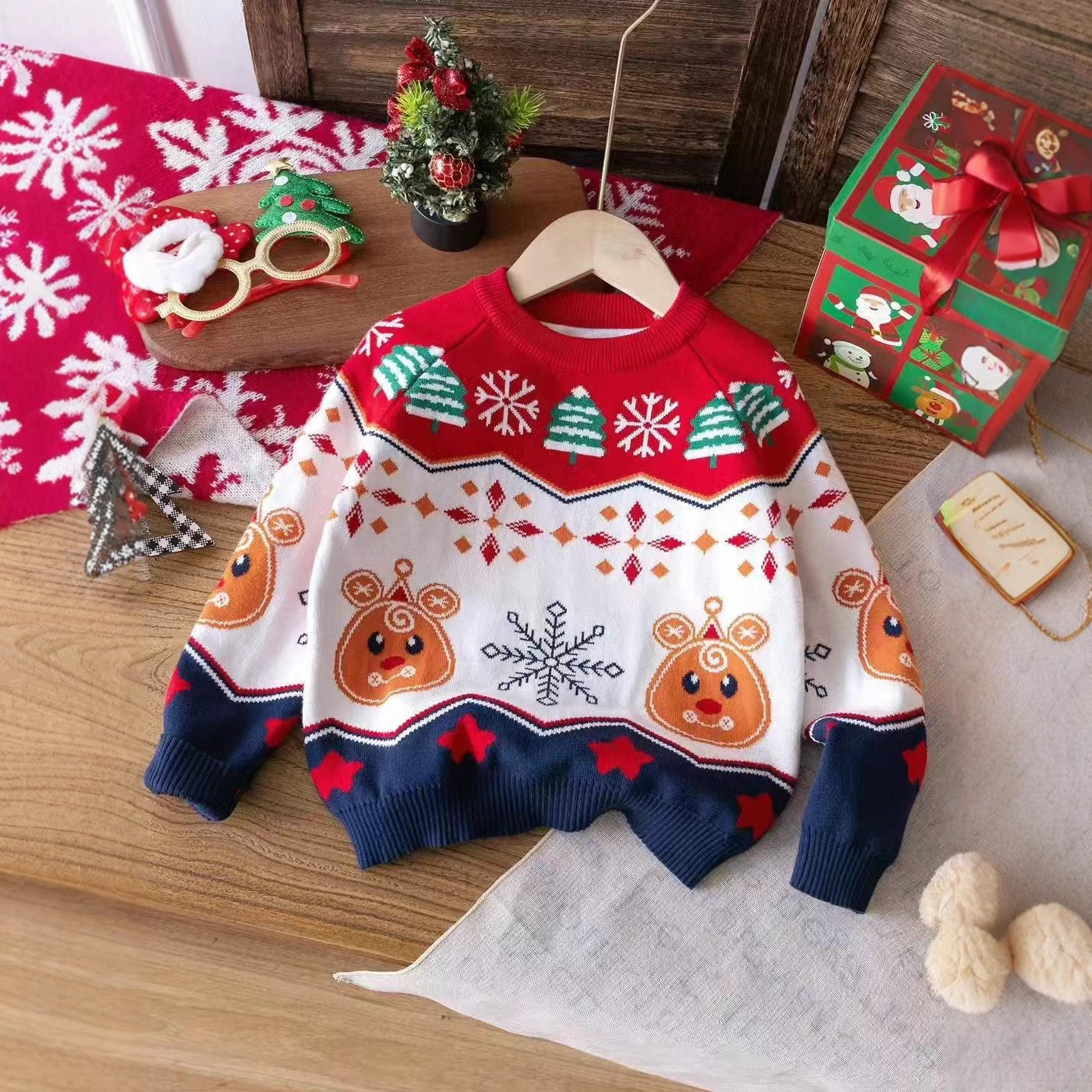 2025秋季儿童圣诞节毛衣 卡通麋鹿男女孩毛衣 时尚保暖冬装厚毛衣