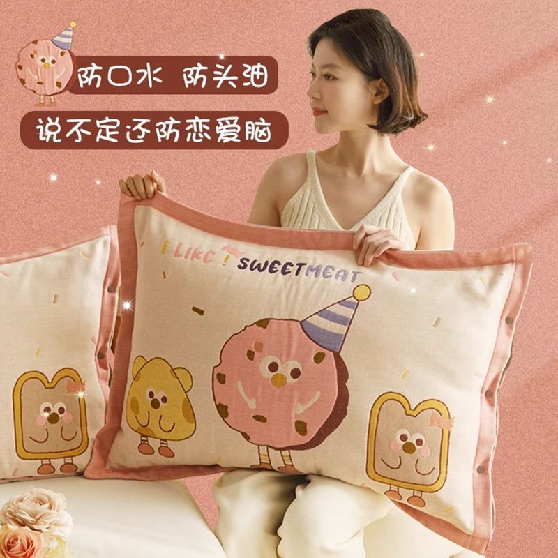 A類全綿枕カバーのかわいいアニメ吸汗通気綿麻ボタン純綿枕カバーカバーカバー